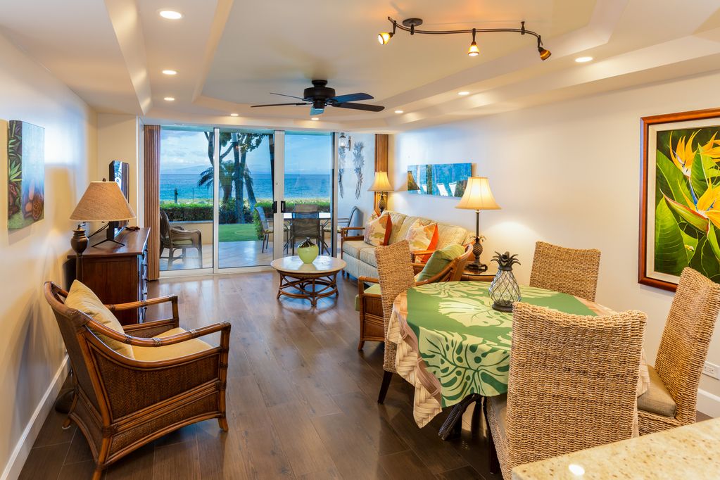 Nothing stands between you and the ocean but the carpet of beautiful grass under your feet. RENOVATION Completed. Ocean Front Condo steps to both Kamaole I and Kamaole II beaches. Our Beautiful lanai spills onto the grass area making our view unforgettable. No elevators to navigate to get to the best snorkeling on the island.