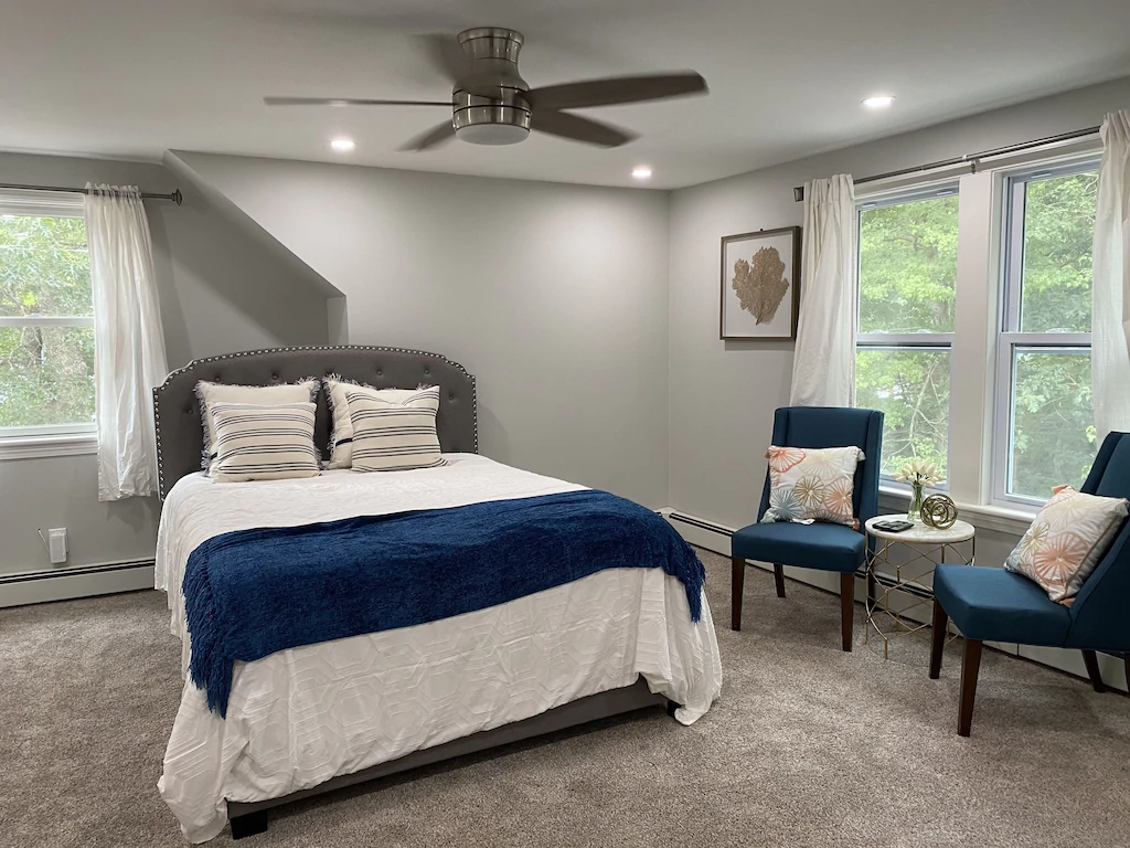 Our space is a newly renovated private studio suite on the second floor. This space could hold two people comfortably but we do offer a inflatable twin bed if you are traveling with a child. There is also a small kitchen where you can make some coffee and prepare meals. You can store food and beverages in the fridge. The Room has a lock on the door for privacy as does the bathroom. The front door entrance will only be used by the guest to ensure your privacy.