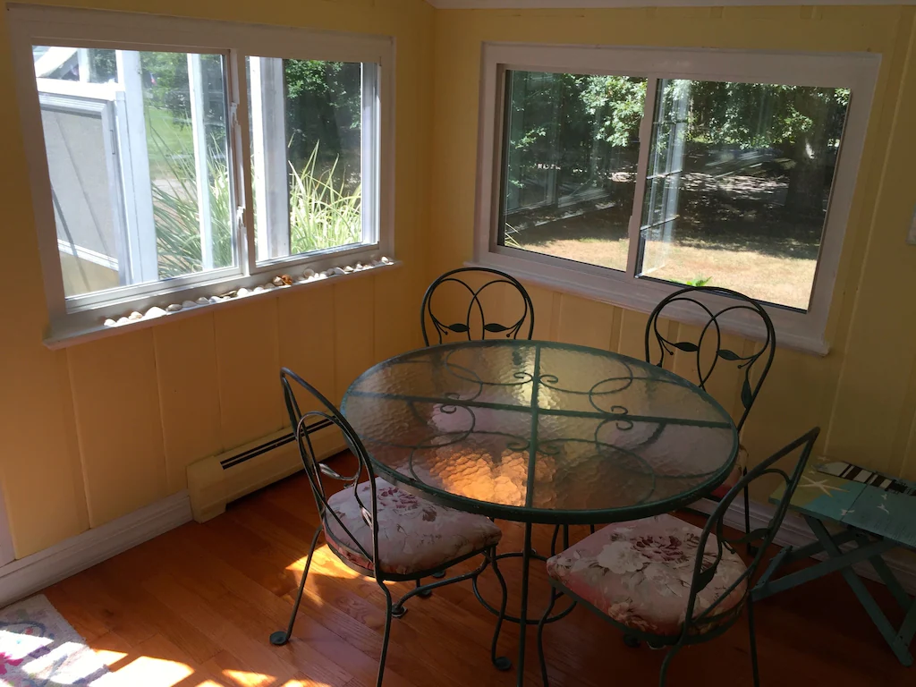 The house is 1,400 square feet- with a greenhouse! Patio out back for grilling and for relaxing. Located on a quiet dead end street with access to Long Pond. 4 Kayaks provided! 1.5 baths.