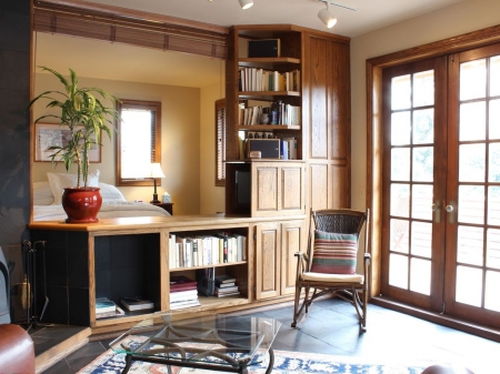 The Highland Guest House offers a modern kitchen with granite countertops, stainless steel appliances including a gas range, a refrigerator, washer & dryer, wood-burning stove, a luxurious king size bed as well as a queen size pullout in the living room and a large private patio overlooking Boulder Creek as well as our award winning gardens. Pets are welcome for free and a covered parking space is available at no additional cost.