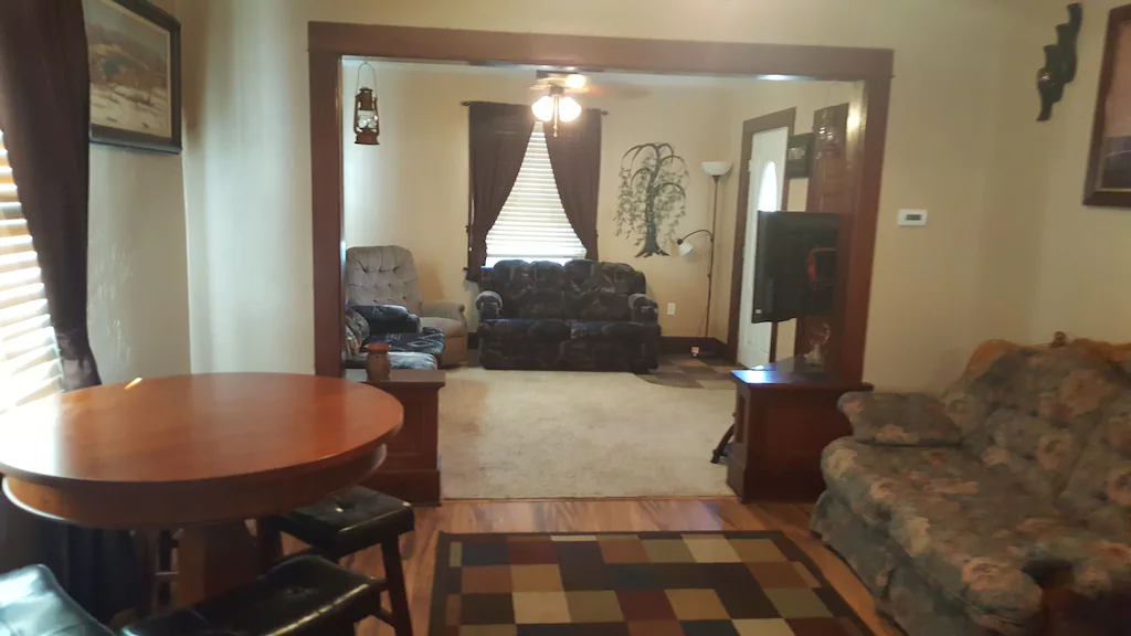 2 bedroom, 1 bath home with all the amenities close to downtown and swimming complex. Big screen TV with DirectTV programming and DVD player. Gas grill, ample parking, and front deck to relax on. There are 2 queen size beds, 2 full size futons as well as a sofa sleeper, couch, loveseat, recliner and plenty of floor space if you choose to have more guests. Easy walking distance to downtown nightclubs and nearby market.