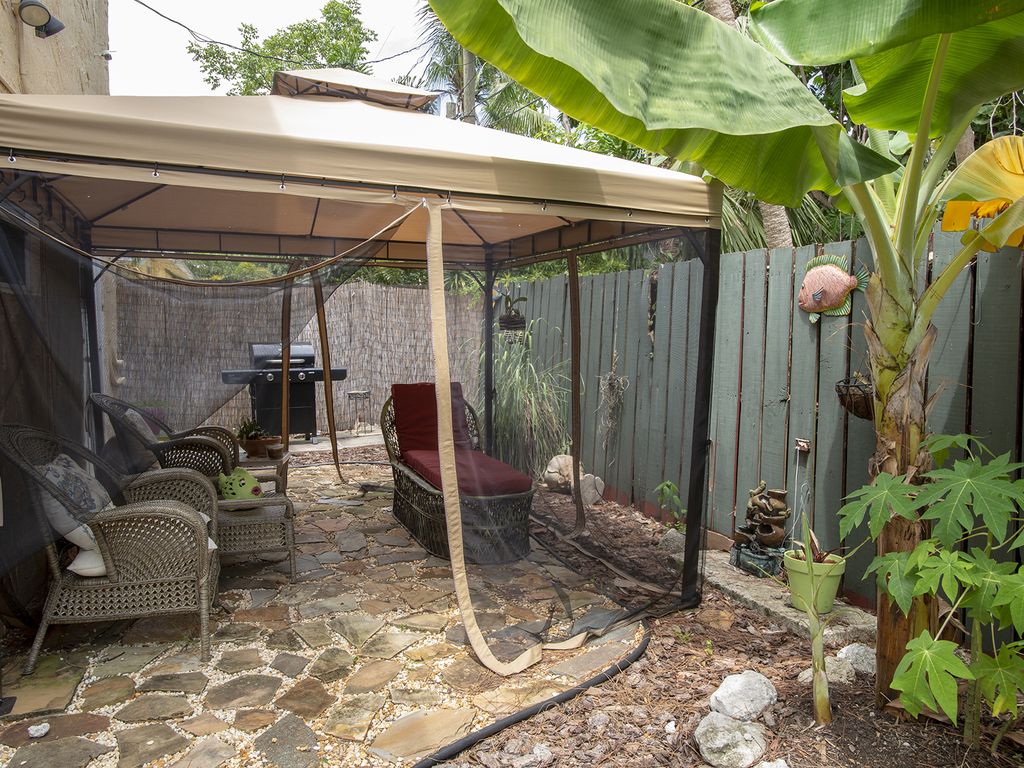 Step into relaxation, comfort and convenience when you stay here. Unwind and enjoy both indoor and outdoor living; private, tropical fenced garden, outdoor grill, hammock and gazebo with comfy cushions. Ample parking is available.