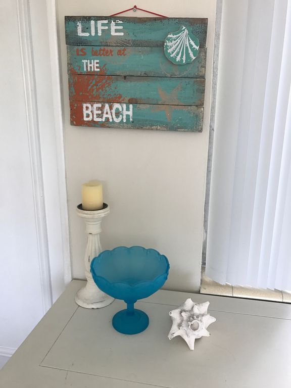 This hotel-like room has 27\" flat screen TV, free high speed wifi for streaming and working, AppleTV with unlimited media, work space with printer/copier, refrigerator, Keurig coffee maker with coffees and teas, iron, hair dryer, towels for beach and bath, and bath products.