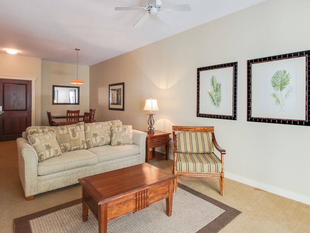 In the open living space, you\'ll have inviting furniture and a sliding glass door out to the patio, where you can catch a glimpse of the beautiful blue ocean beyond. Sit back and relax on the comfortable sofa and watch your favorite shows on the cable TV, or catch up on the latest online news on the wireless Internet.