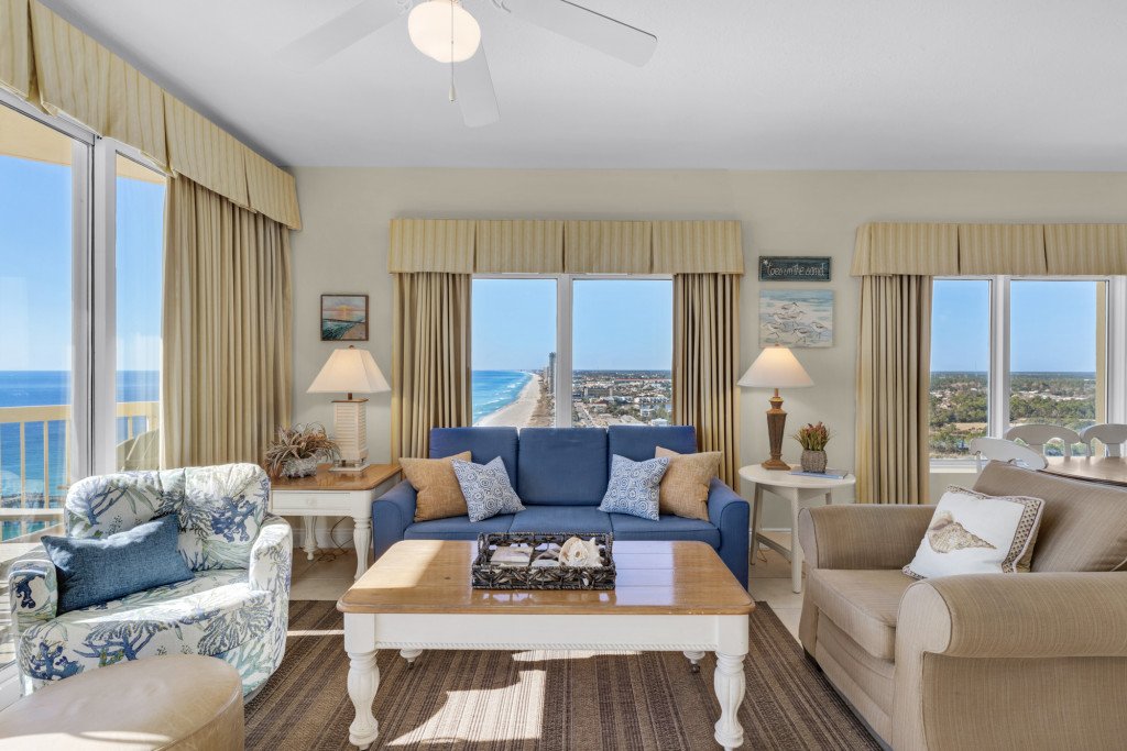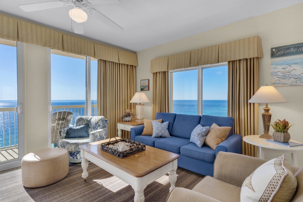 2209 WEST is located on the outside corner of the WEST Tower on the twenty second floor of CALYPSO RESORT. We love this unit because of the fabulous panoramic, unobstructed beach and ocean views with magnificent sunsets! There is no pool or street noise....Very quiet and peaceful.