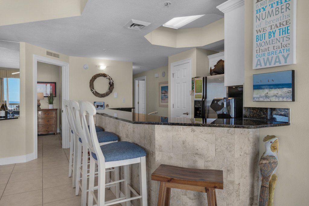 Quality appointments throughout including granite counter tops in the kitchen...Keurig or regular coffee maker, blender, slow cooker, microwave, oven and microwave. The refrigerator provides ice, water and storage for ice. New tile work was completed in 2019 as well as cabinet updating.