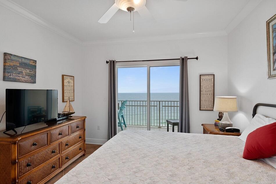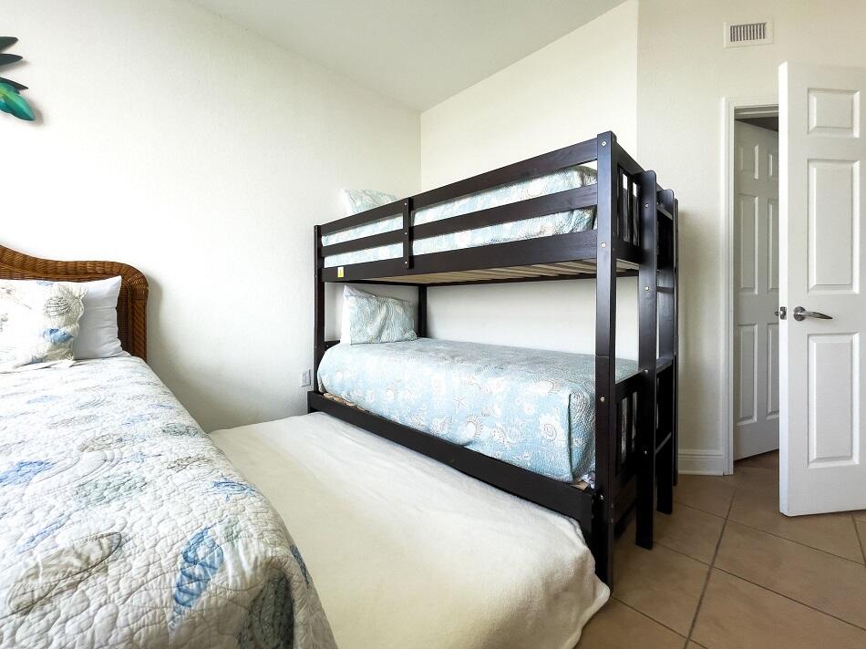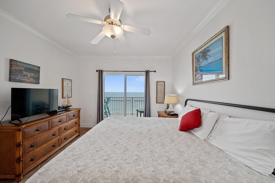 As you step inside, you\'re greeted by a tastefully decorated space that combines comfort and elegance. The condo\'s layout is thoughtfully designed to ensure a comfortable stay for up to 10 guests. The Primary suite featuring a luxurious King bed and private access to the balcony, allowing you to wake up to breathtaking gulf front views. The second bedroom is cozy and inviting with a Queen bed. The third bedroom, perfect for kids or additional guests, offers a Queen bed and a Twin bunk bed. The living area includes a convenient sofa sleeper for extra sleeping space. Every bedroom is equipped with a TV, ensuring everyone can relax and enjoy their favourite shows after a day at the beach.