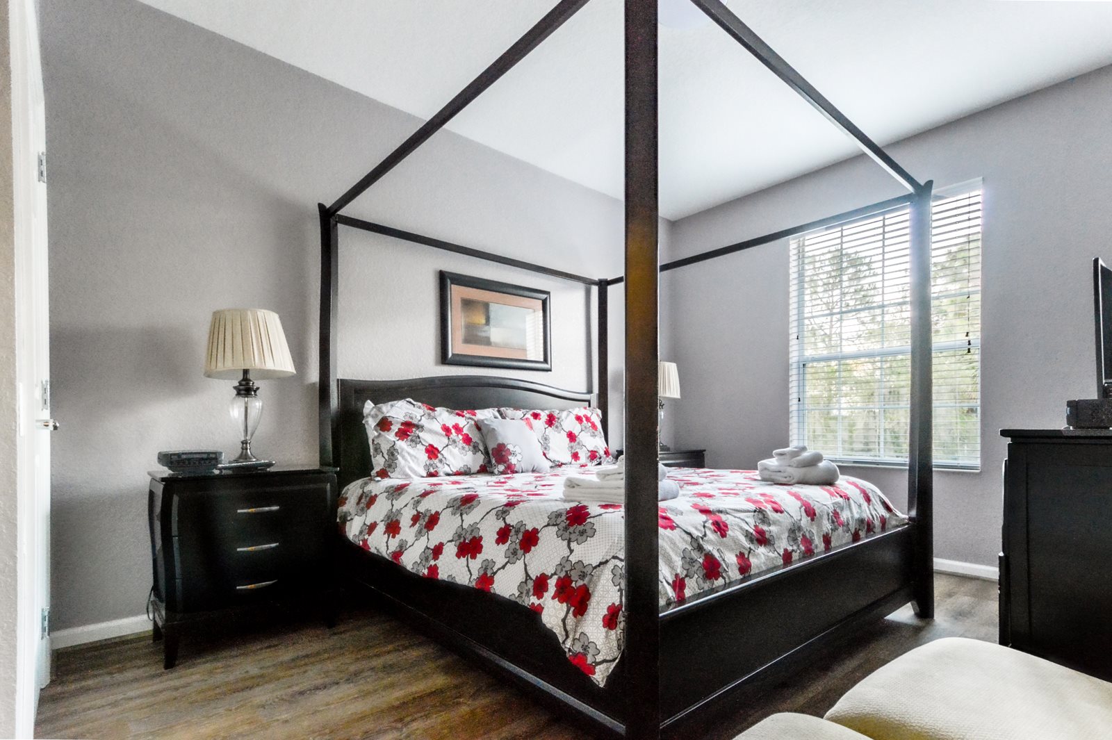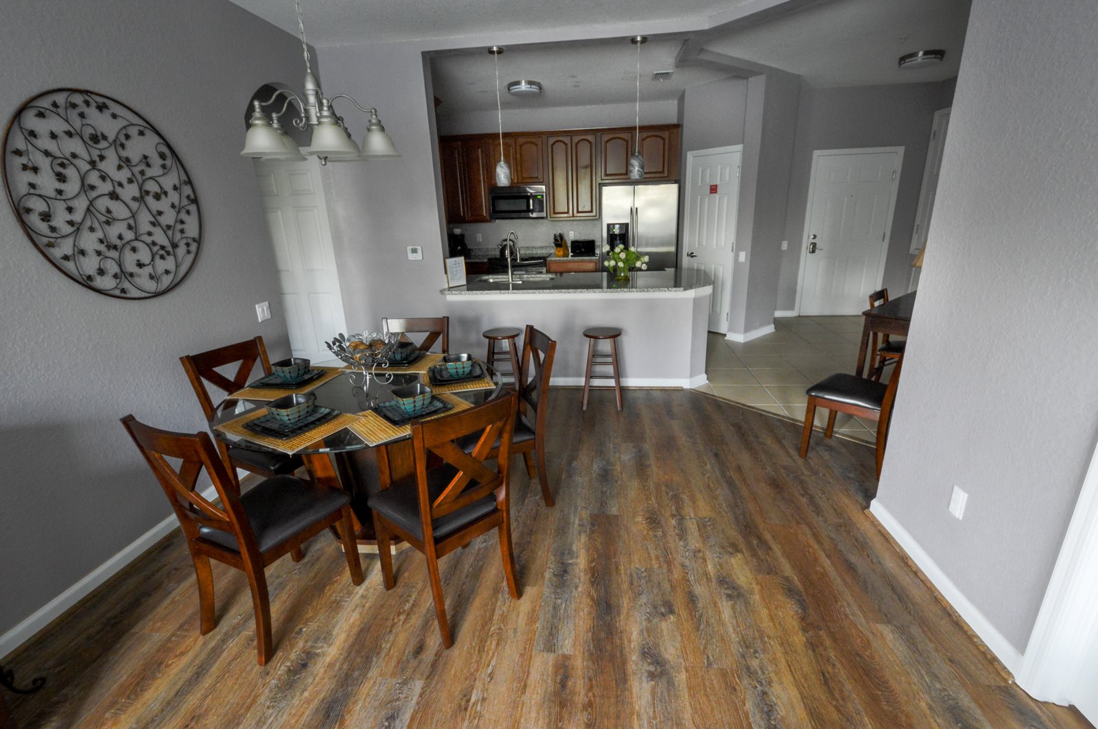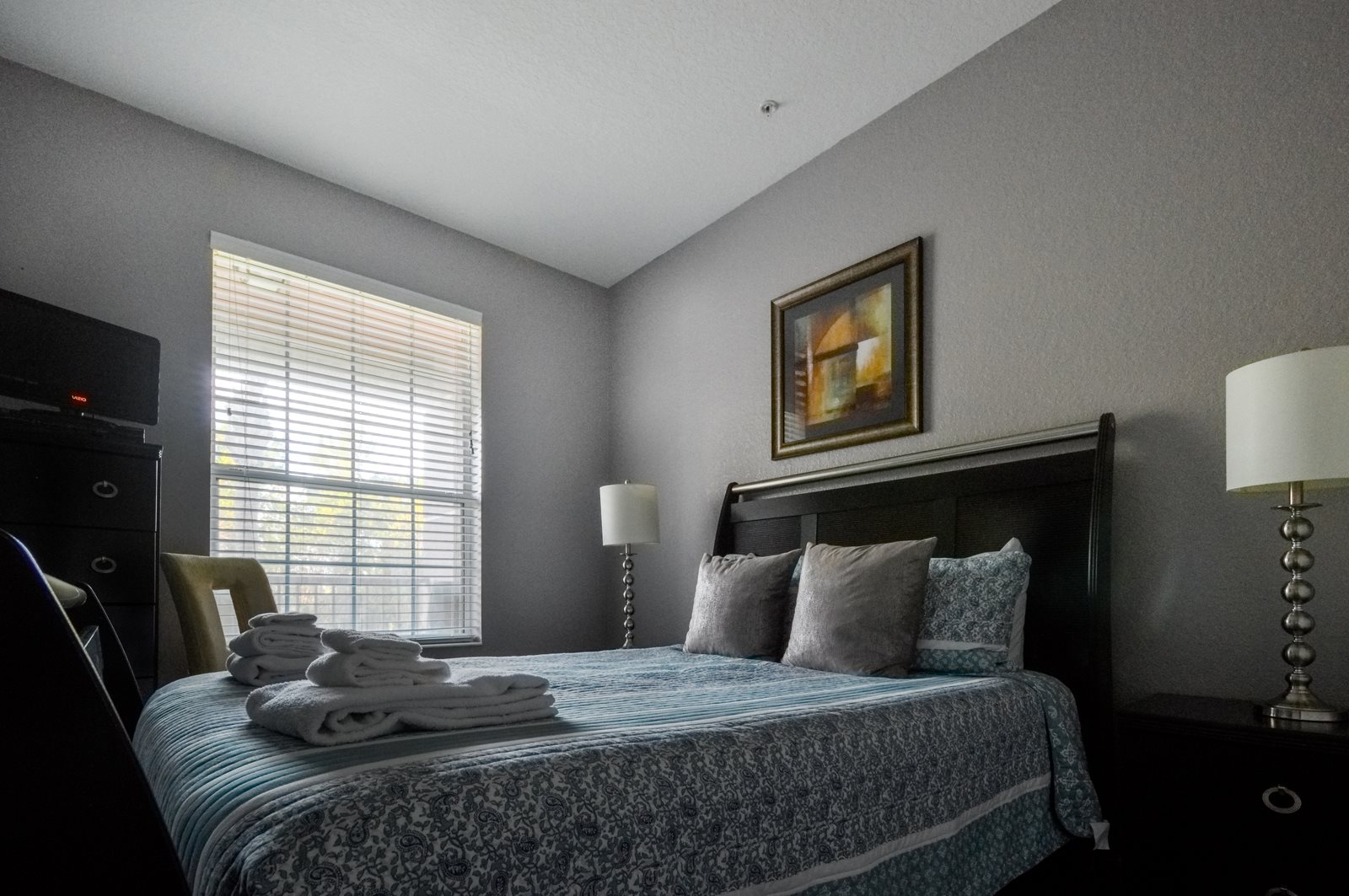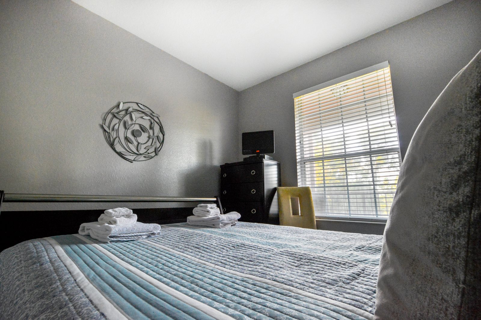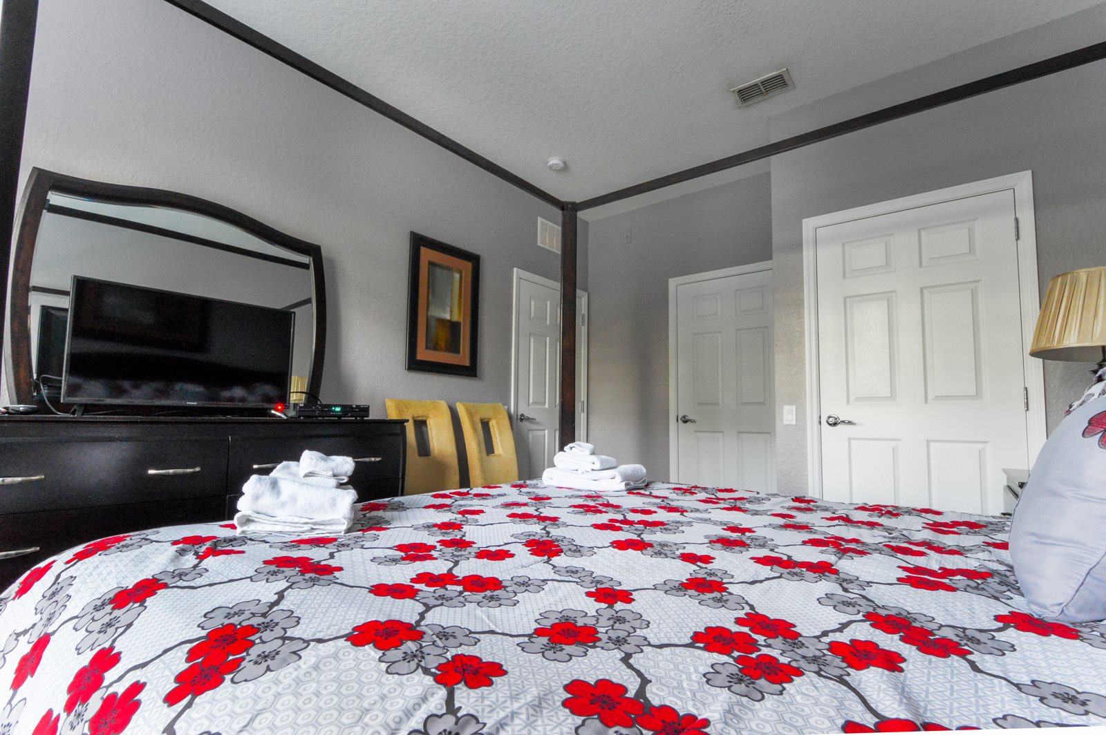 After a full day of fun at one of Orlando’s many attractions you will love to be able to relax in this sumptuous, professionally decorated condo which sleeps 8 guests and features three superbly appointed bedrooms, two full baths, an open floor plan, and a fully stocked kitchen with every imaginable amenity. The master bedroom sanctuary includes a King size bed with a luxurious ensuite bath and a flat screen TV. The second stunning bedroom retreat features a Queen size bed and a flat screen TV. The third bedroom has two Queen beds along with a flat screen TV which allows everyone to enjoy their own television entertainment.