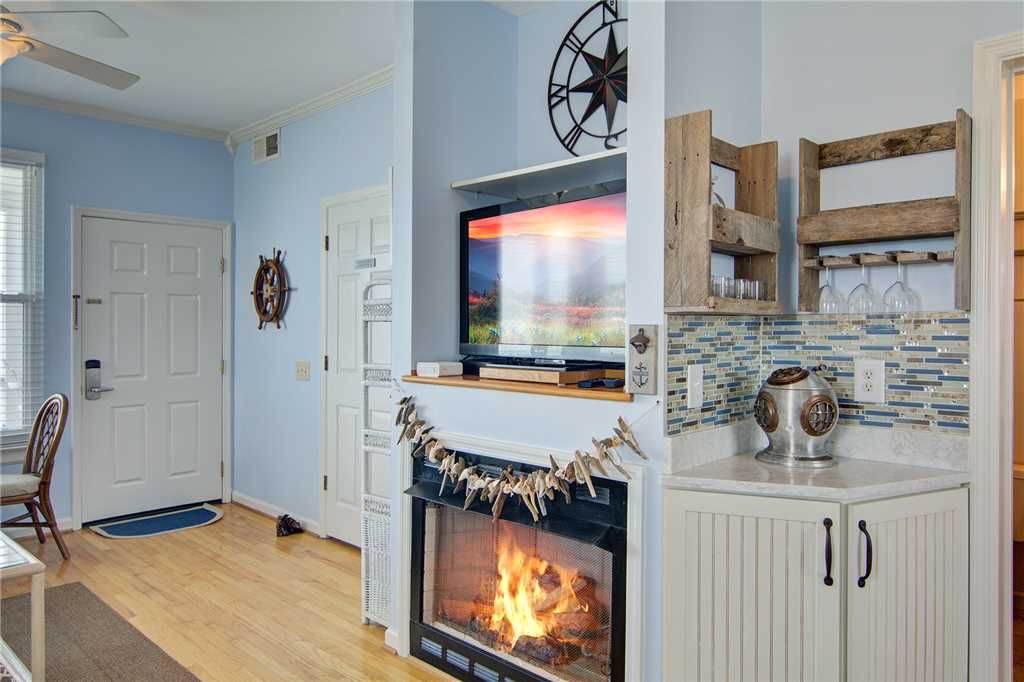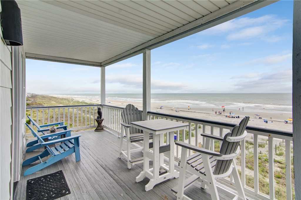 The master bedroom offers one king sized bed and flat screen tv. This centrally located Folly Beach condo also now includes a dry bar, new windows, and window treatments. Be sure to take in beautiful views and the feel the ocean breeze as you unwind on the deck on the new outdoor furniture.