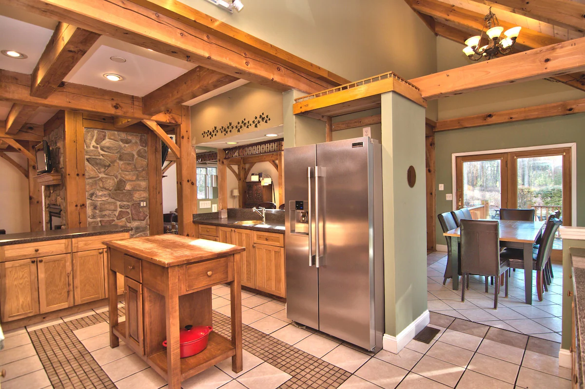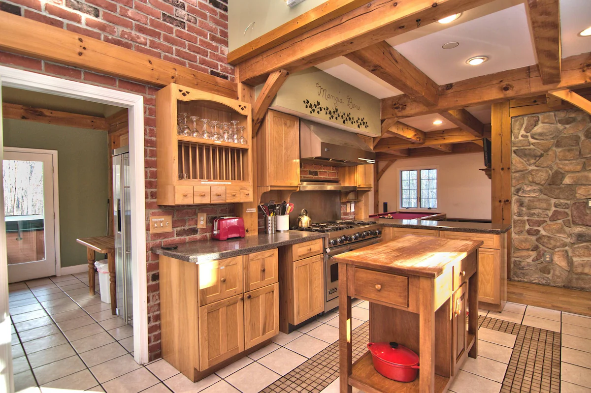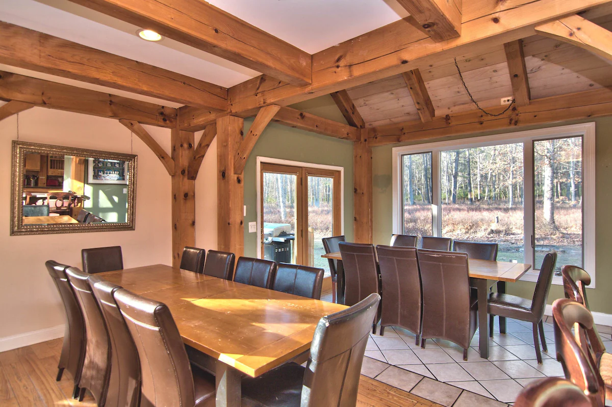Cranberry Lodge is a Massive Post and Beam Lodge Home on over 25 private acres with 7 bedrooms plus two separate loft areas and 3 full bathrooms.