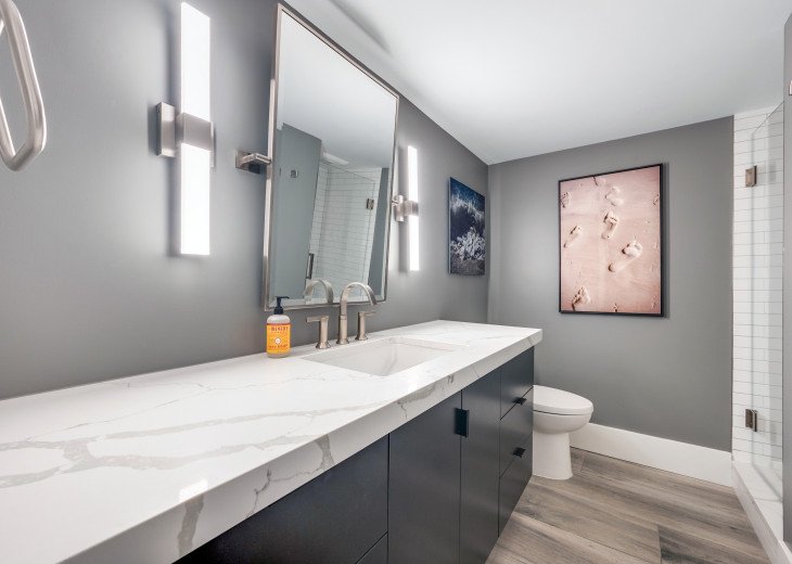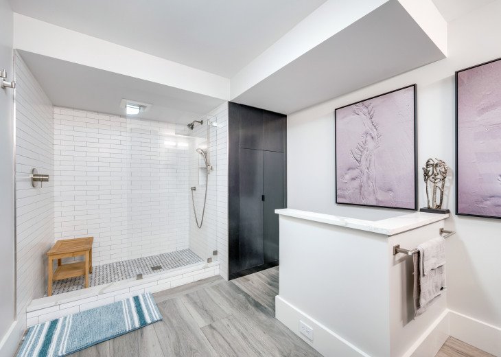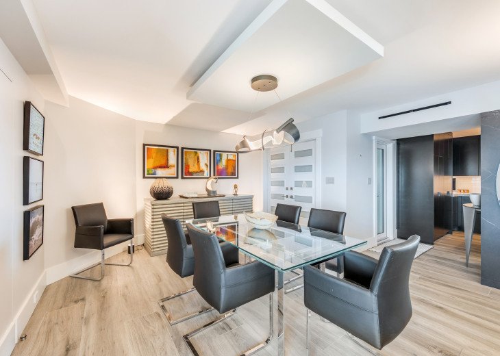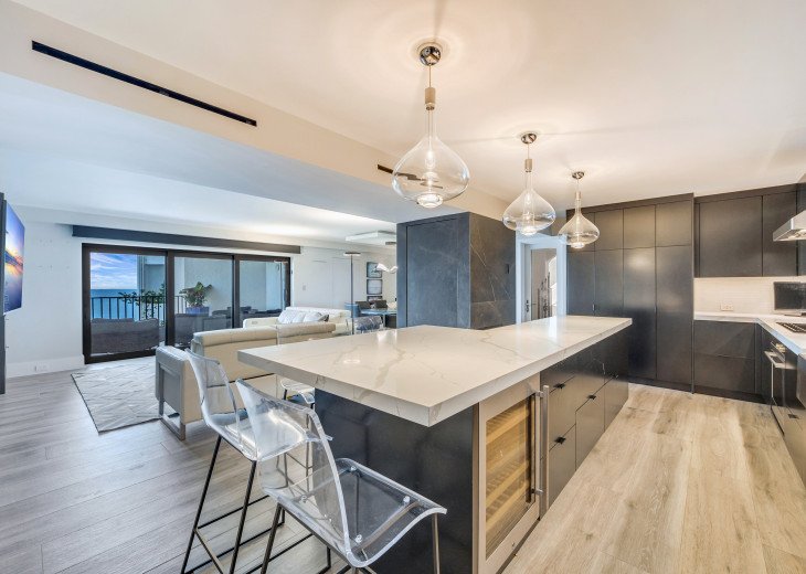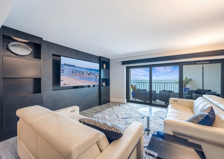 This recently renovated condo is located directly on the beach, with stunning views of the turquoise Gulf waters and crystalline coast. The contemporary unit has 2 bedrooms, 2 baths, a spacious kitchen, all new appliances, stone tile floors and floor-to-ceiling glass. The 1818 sf condo has central heating/cooling and comes with 1-covered parking space.