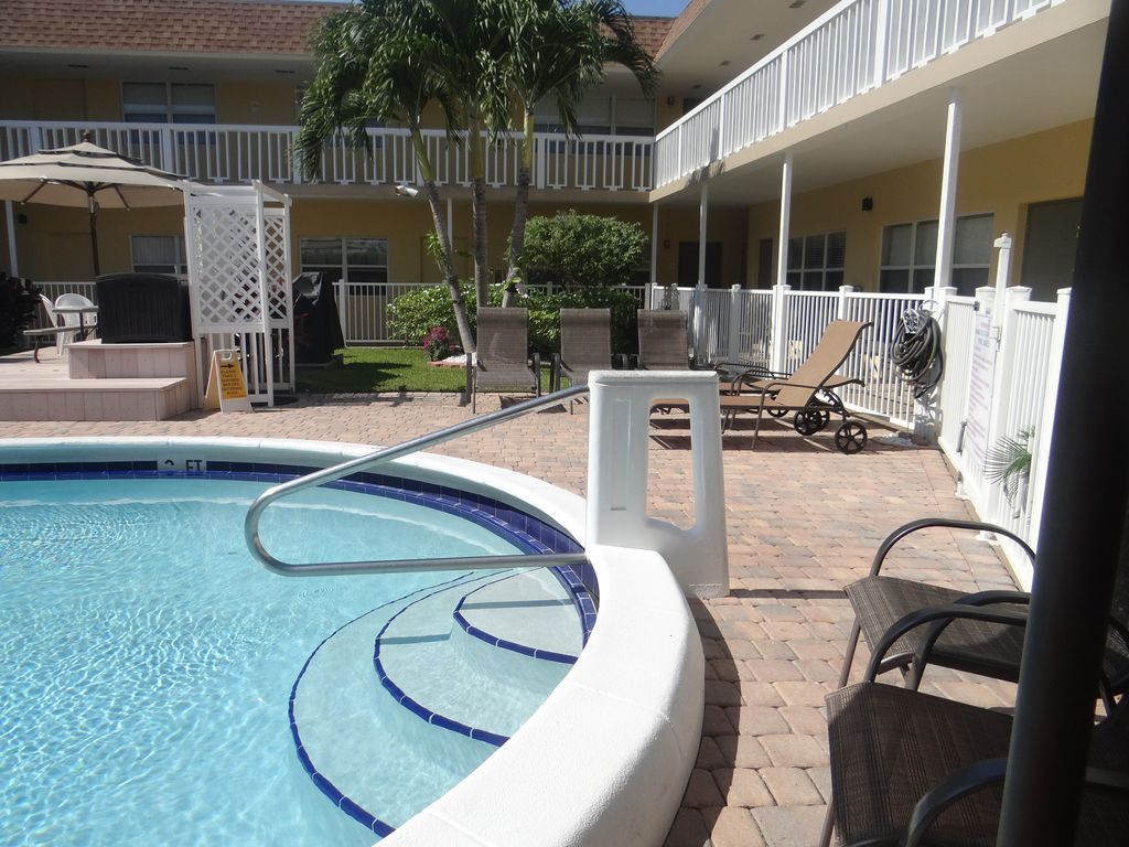 No car necessary! Fully equipped ground floor condo, tastefully decorated, two bedroom with King and two singles, two full bathrooms, including full kitchen, quality linens, towels, beach accessories, Beach towels, 2 hair dryers, iron, ironing board, two large flat screen TVs, 240 channel cable, high speed internet, wifi, and a heated pool. Complimentary calls throughout the US and Canada. Quiet central AC and heating. Ten minute walk to the beach-boardwalk, many restaurants, bars, cafes, services, shops, a Publix grocery, diving centre, fishing pier, gyms, and boat rentals. Tennis, golf and shopping centres nearby. Beautiful neighbourhood surroundings with all the conveniences. Reserved parking space included. Full laundry on site. A quiet and secure two story 16 unit condo property with full time manager situated on a canal in friendly Pompano Beach. Twenty minutes from Fort Lauderdale airport. Get more information
