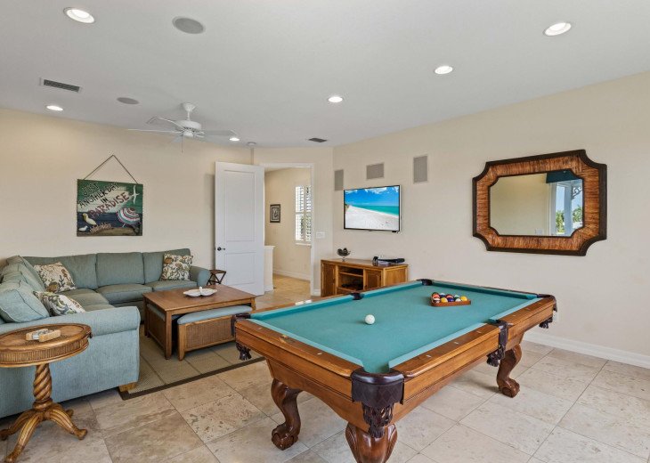 The Villa Caribbean Breeze is very high quality, modern and furnished with great attention to detail. Outside, there is besides the large pool and terrace area nor a balcony, adjacent to the billiard room and a reachable by a spiral staircase terrace on the 2nd floor, additionally a large boat and sun deck with captains walk.