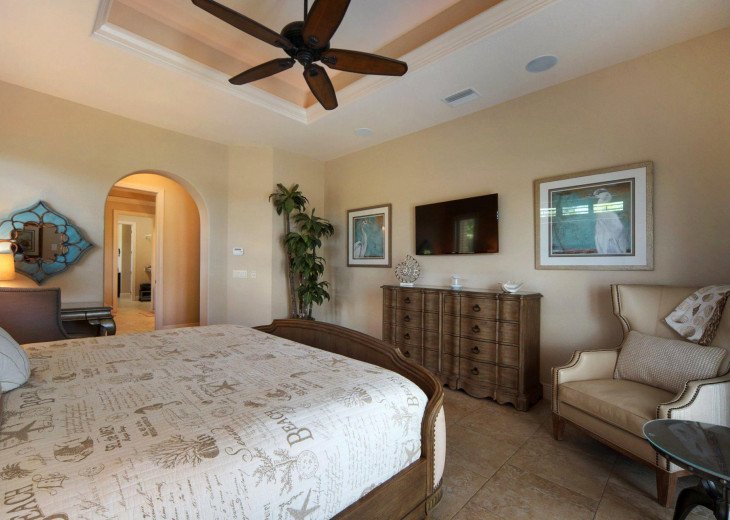 Inside the villa you will be impressed with the high ceilings and large sliding glass doors that open up to a gorgeous view of the canal. Well-equipped and tastefully furnished, with plenty of space for up to eight people. There are two master suites and two further bedrooms (all with king size beds), three bathrooms, kitchen with open dining area, billiard room and spacious living room.