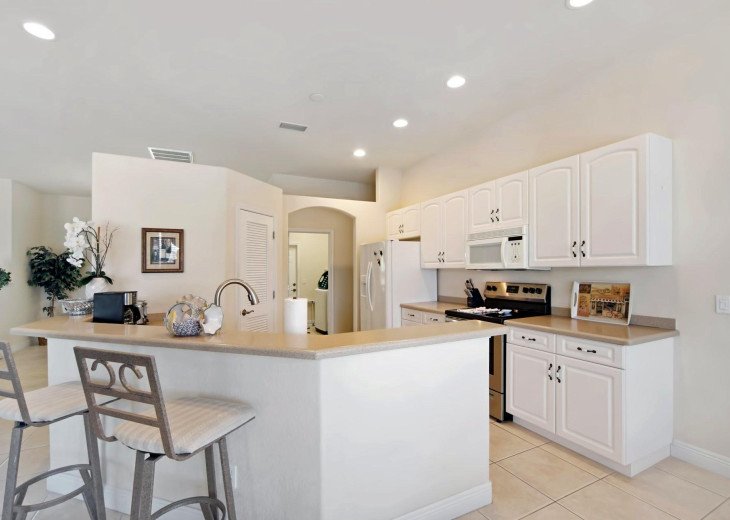 Enjoy the Florida sun on the pool deck in the lounge chair or with a meal, maybe even on the existing gas BBQ grill cooked.