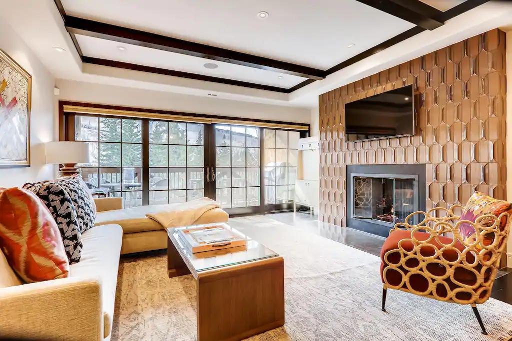 This residence is 2 bedroom/2 bathroom luxury Vail condominium constructed in 2008 and completely redesigned in contemporary mountain style in 2017 and located on the bank of Gore Creek and steps away from Vail Village. This residence is a couple- minute walk away from the ski lifts (and ski school) of the world class Vail Resort and located in Vail Village within easy walking distance to restaurants, shopping and nightlife. The residence features outstanding mountain views, gas fireplace, designer furnishings, gourmet kitchen with Wolf range, a heated pool and hot tub specifically for residents and a complimentary underground parking space as well as private ski/golf club locker and locker room.