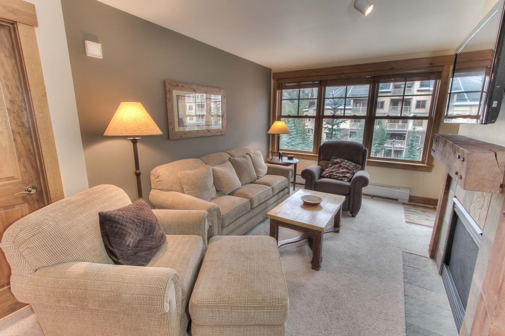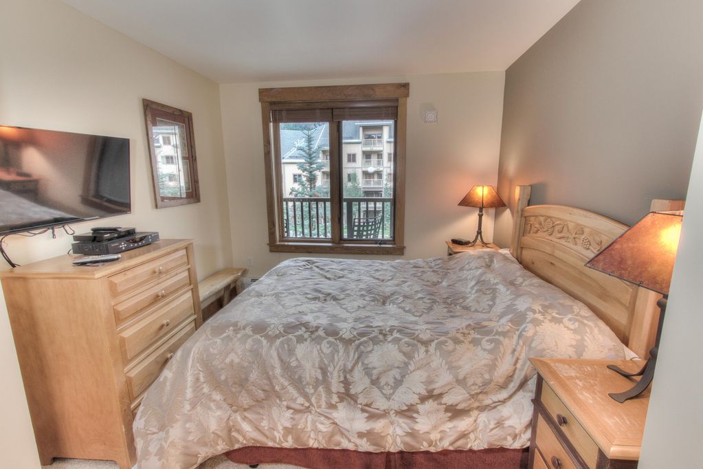 The balcony has great views! After enjoying your day skiing, put your skis in your own ski locker, drink your favorite beverage, relax next to your own stone gas fireplace and watch your 40\' HDTV.