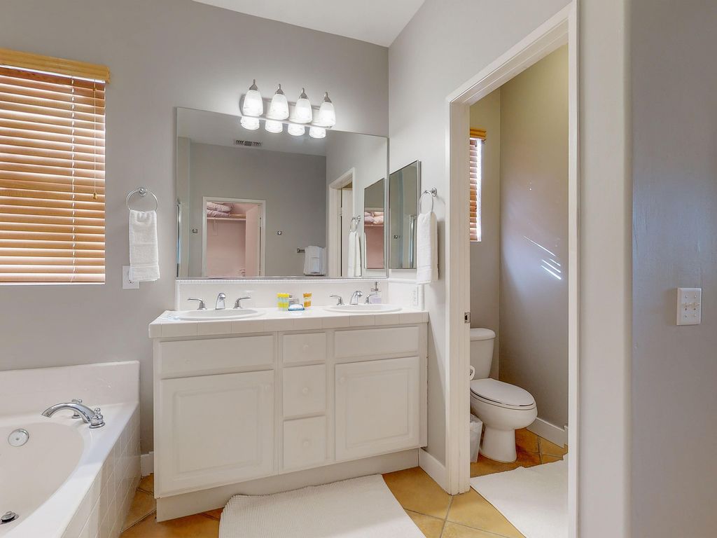 After a day out and about, ease your muscles in the shared hot tub and then spend the day relaxing by your private pool - though please note if you would like the pool heated, there is a minimum three-night stay and an additional daily fee. The private washer/dryer will keep the laundry at bay while you pick out a DVD from the provided selection or check out what\'s on cable. Use the gas grill or full kitchen to make a mouthwatering meal, then dine al fresco out on the patio to watch the desert sky come to life. Connect to the free WiFi to book a restaurant reservation and then end the day with a glass of wine by the warmth of the gas fireplace.