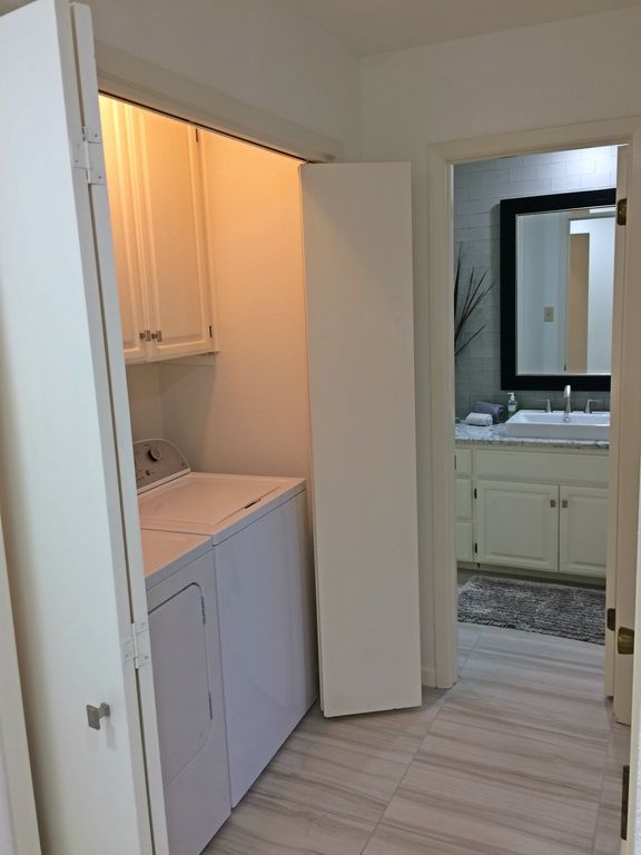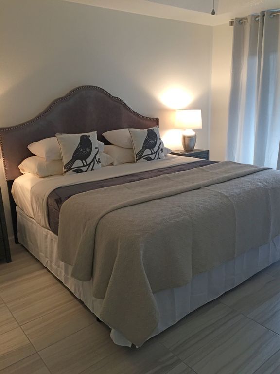 Cozy yet spacious, this romantic condo has everything you need. The living room has comfortable seating, a flat screen TV with cable, and free wifi. The fully-equipped kitchen is stocked will all modern appliances, coffee maker, and plenty of dishware, cookware, and utensils for dining in. You\'ll sleep comfortably on the brand new beautifully dressed king bed and enjoy plenty of room for your belongings in the large walk-in closet. The bedroom also includes a TV. You\'ll find his and hers sinks in the bathroom vanity and a stunning newly remodeled walk-in shower.