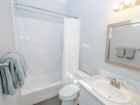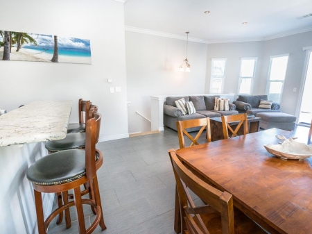 Located 3/4 block from the sand and boardwalk of popular 34th Street, this 3 bedroom/2 bath upper unit unit offers a view towards the oh-so-close ocean from the spacious front balcony, and has been completely remodeled with all the coveted features that make a vacation rental desirable: brand new kitchen and appliances, updated bathrooms, garage parking, beautiful modern tile flooring, high ceilings, and all new furnishings that enhance the cool grey coastal motif throughout. And so many other great amenities are just a quick walk away, including the major neighborhood grocery store; multiple eateries; the Newport Pier area, and much, much more! All local favorites! Here\'s what you\'ll find