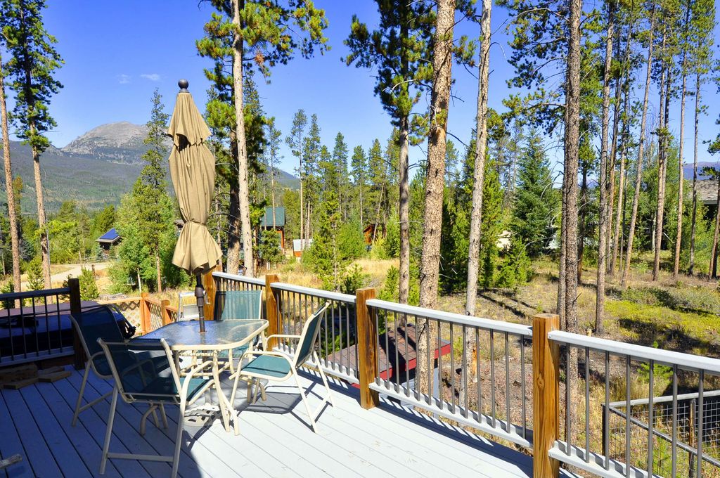 This beautiful two bedroom plus loft, two bathroom vacation home is situated in a quiet neighborhood just minutes from historic downtown Frisco. With additional sleeping space in the loft area just up the hand crafted wood spiral stair case in the living room. Step out onto the wrap around deck and you can enjoy 360 degrees of amazing mountain views as you cook up a meal on the provided gas grill. Or, simply enjoy the view from the private hot tub located on the deck. After a long day on the slopes cozy up and enjoy the gas fireplace as you admire the Native American influenced décor and hand crafted wood work throughout the home. From newly remodeled bedrooms and bathrooms you are sure to enjoy every detail of this home and you’ll never want to vacation anywhere else.