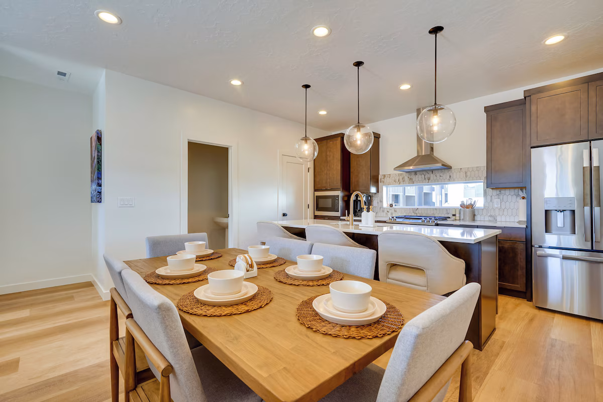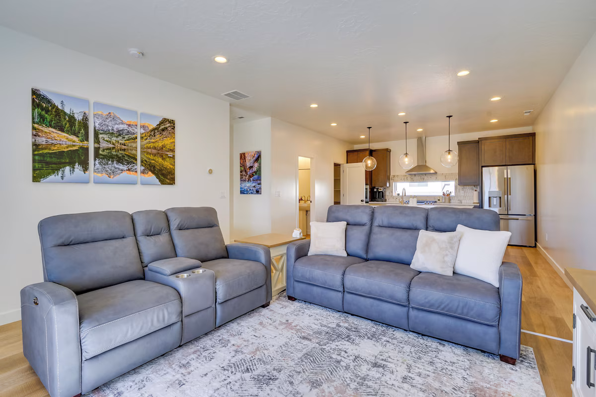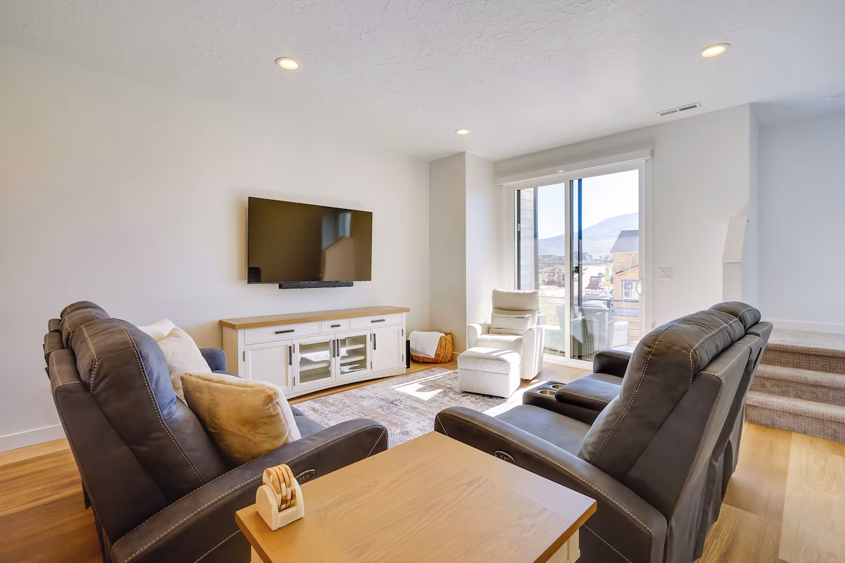Escape to the beautiful town of Mountain Green, UT, and experience the best of outdoor adventure at this spacious 3-bedroom, 3.5-bathroom vacation rental townhome. With its prime location near Snowbasin Resort and Pineview Reservoir, this property allows outdoor enthusiasts to have easy access to skiing, snowboarding, hiking, mountain biking, and swimming. After a thrilling day, relax in the comfortable living area, cook a delicious meal in the fully-equipped kitchen, or unwind on the balcony.