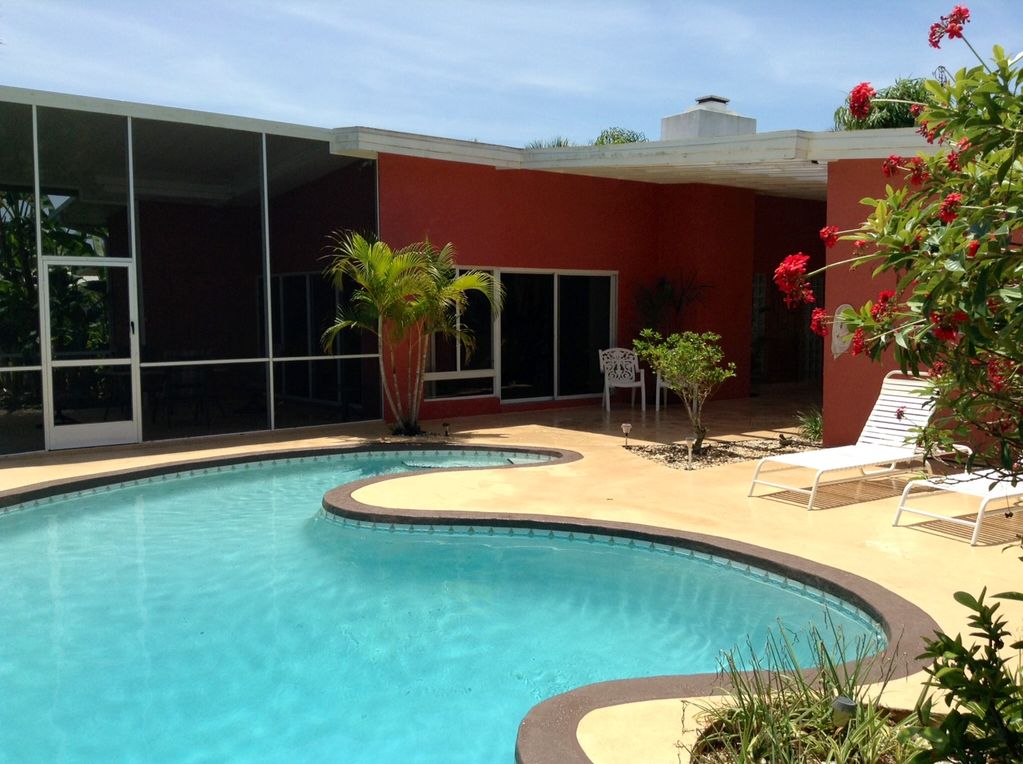 This Updated 60\'s style Florida POOL home makes a vacation that you will never forget .