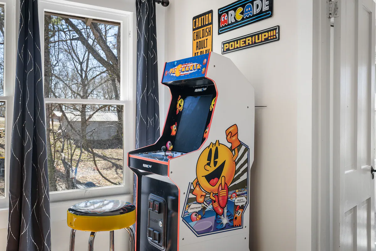 Enter the spacious Game Time home and you arrive in the game room area, featuring foosball, air hockey, and a chess/board game table, as well as a 55 inch Roku TV. The game theme continues throughout the house for hours of family fun. Although we provide an ample assortment of games for your enjoyment, please feel free to bring your favorites.