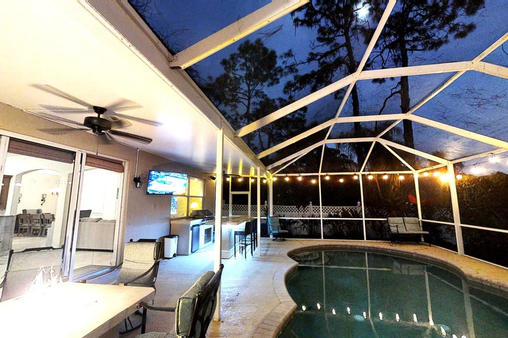 Within minutes from two of the best beaches in Naples, this is a don\'t miss house. One of the bigger homes in the neighborhood makes it a perfect choice for just a few guests or 8-10 guests. The outdoor living is the only way to go when renting in Naples. Heated pool and spa along with an outdoor grill, bar, TV and firepit are just a few of the amenities. The first floor features an open concept with new living and dining room furniture. The master bedroom is very spacious with a brand new tempurpedic mattress. Office area with computer featuring High speed WIFI (200 mbps) for all your internet needs. Beach chairs, beach towles, beach bag, coolers, bikes-everything you need for a beach house.