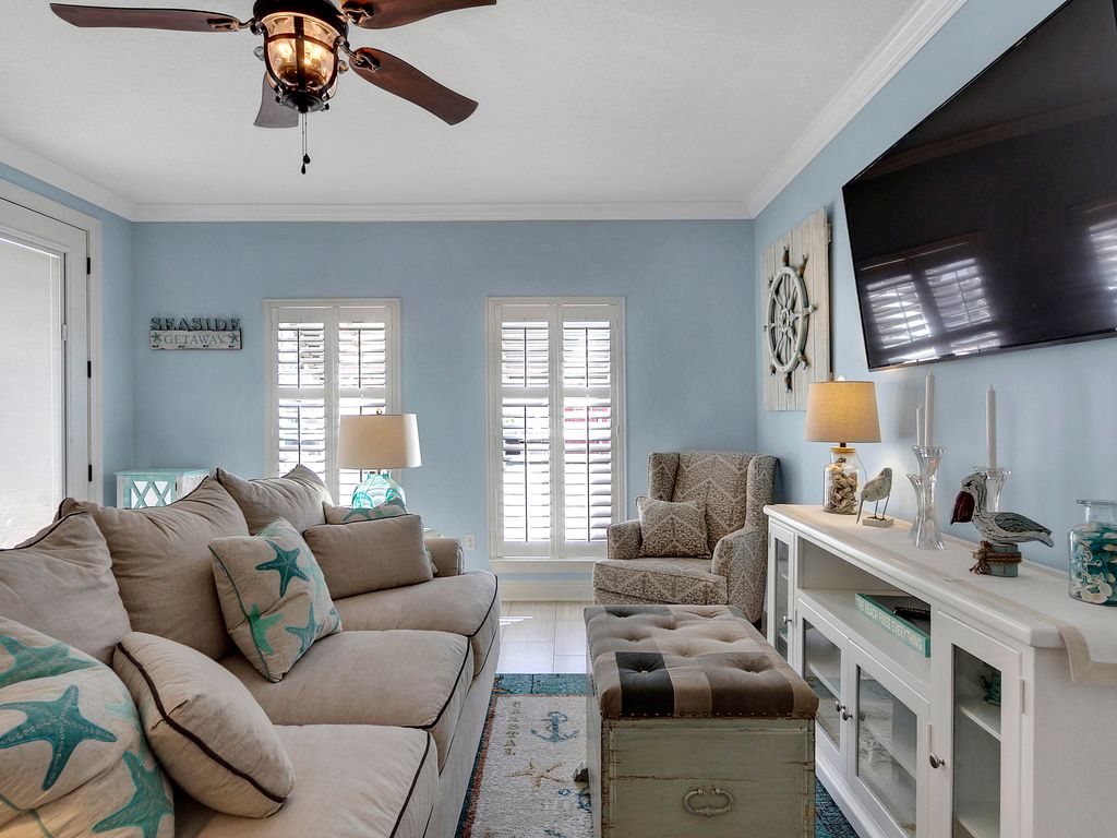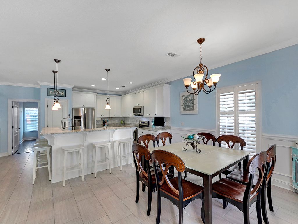 Our home is one of the NEWEST Homes built in the Villages of Crystal Beach and NEW to the rental market. Our baby/kid friendly home is 4 bedrooms with 3.5 baths (1958 SQFT) so there\'s plenty of room for everyone! Leave the baby gear at home! Our rental provides two cribs, a high chair and baby gates. Three of the four bedrooms have king size beds and the fourth bedroom is a bunk room with FOUR built in bunk beds. Each bedroom has a Smart TV so Hulu, Netflix or the internet can be accessed from any room! We also have Smart TVs in the Kitchen, Living Room and Loft. The kitchen area has seating for 12 and there\'s plenty of counter space to prep a big family meal if you choose to do so.