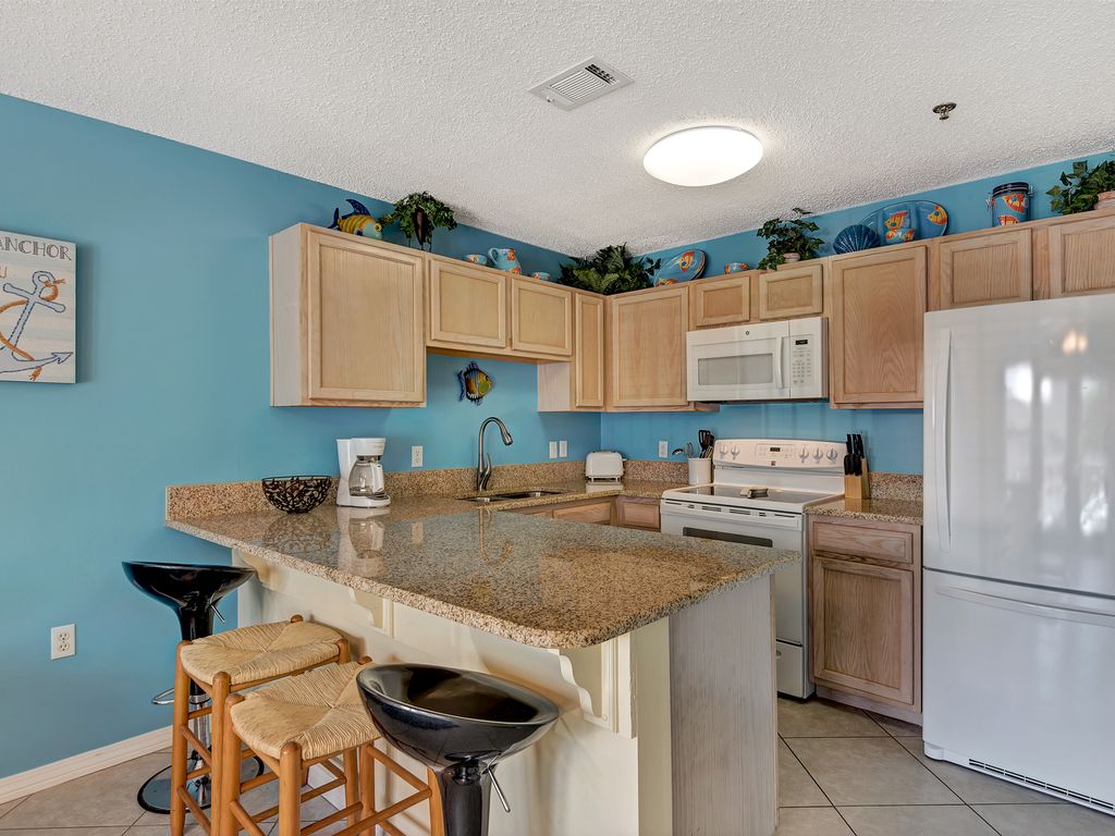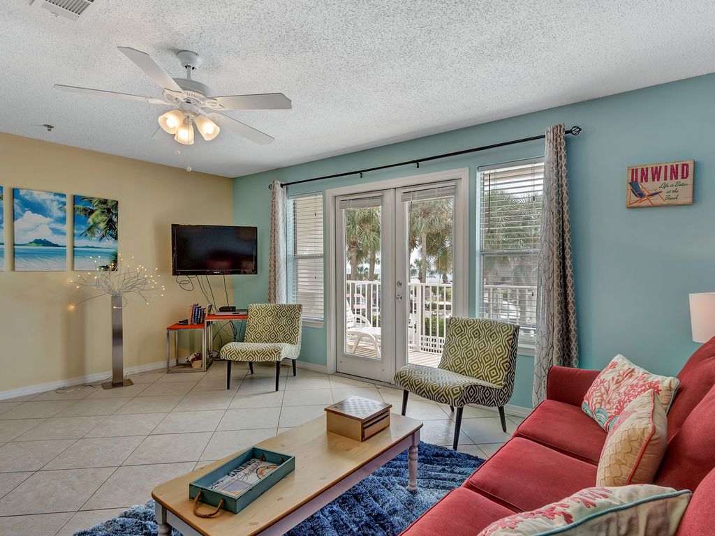 One bedroom, one bath condo. This unit has a queen-size master with flat screen TV, hall twin size bunks beds, sofa sleeper & flat screen in living room. It can accommodate up to 6 comfortable. Ideal for a couple or small family. Condo and property is WiFi friendly. This unit is located on the 2nd floor in a three story complex. It offers all you need for a great week on the beach. Washer & dryer in unit. Full kitchen with all appliances.
