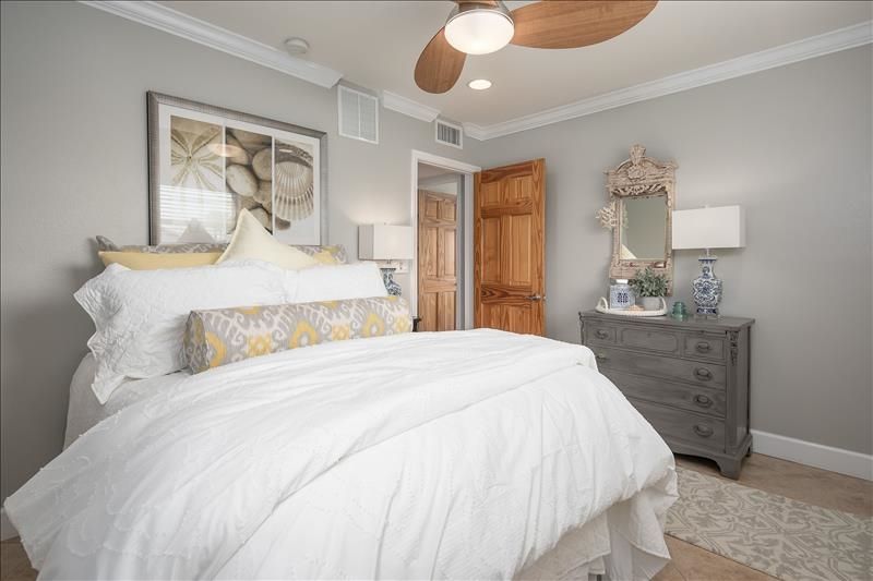 Perfect (2) bedroom/(1) bath beach condo- just walk out to the beach~ or watch the breathtaking sunsets from your own condo. Open up the sliders to the juliette balcony and hear the sounds of the gulf. This 2nd floor condo offers designer style furnishings, beautifully fully equipped kitchen for a comfortable vacation stay; master bedroom offers another slider with juliette balcony and those amazing gulf views, queen bedroom, ceiling fan; the guest bedroom offers full bed and ceiling fan. The upgrade bathroom is large with plenty of linen and storage space, a designer style tile walk in shower with glass enclosure. Back patio with table and chairs. You will LOVE this place... a walk or short drive to downtown Pass-A-Grille with all the live music, dining and dancing, shops and more...