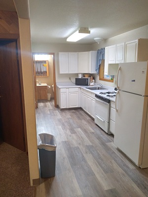 each with a shower in the bath house. Out front by the river, there is a nice lawn,