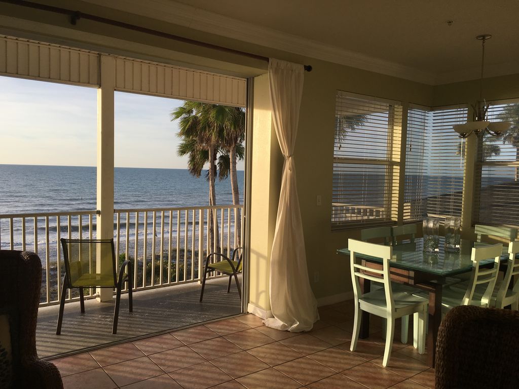 This beautiful Top floor condo unit built in 2000 is situated right on beautiful Indian Rocks Beach. A full ocean view with sliding glass doors that fold into the wall for a spectacular view. This unit is a 3rd floor, corner unit which means there are extra windows and the ceilings are higher than standard units. This makes you feel like you are in a house compared to an apartment. (it also means you wont hear the pitter patter of people walking on the floor above, because you are the top floor). The fresh coat of paint, remodeled kitchen and crown molding make this a great place to relax and take in the breathtaking views. We hear it over and over that the pictures just don\'t do it justice. I guess we need to take better photos :(