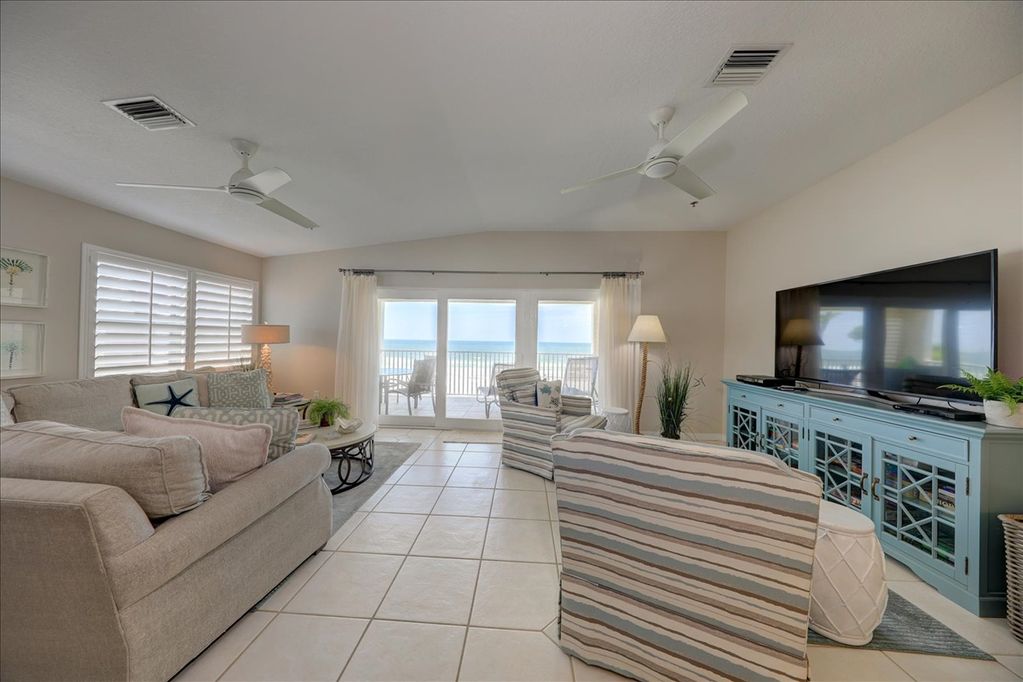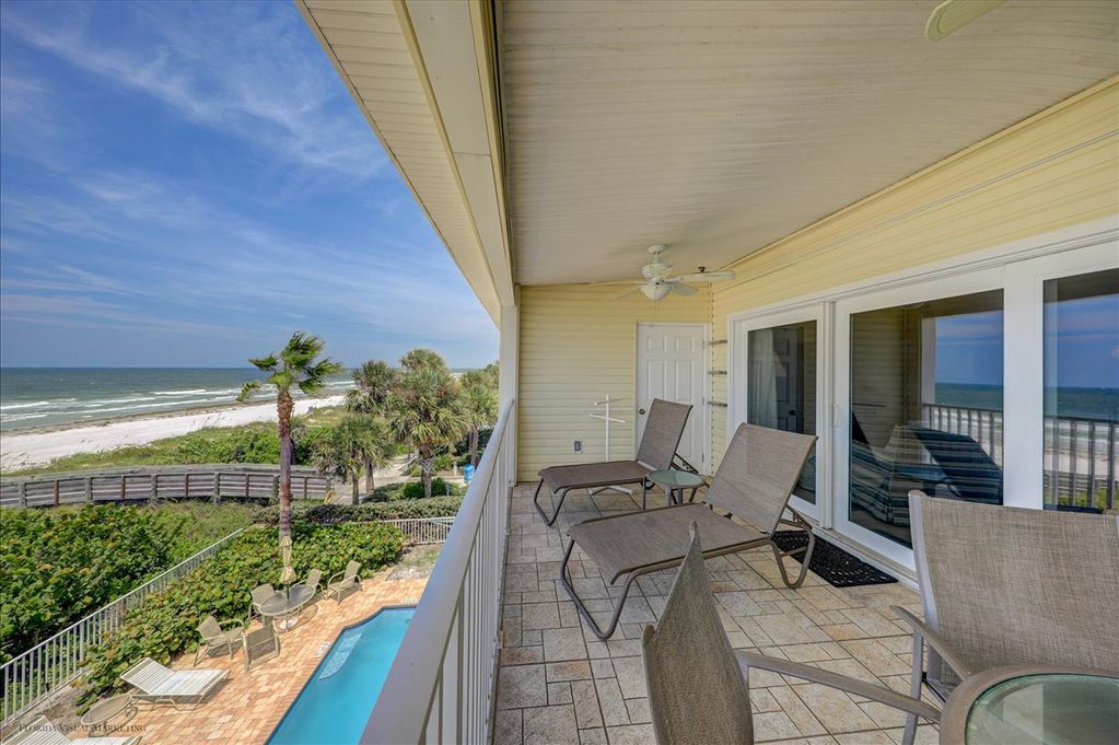 Beautiful oceanfront 3 bedroom, 2 bath condo in a small, 4 unit building. Enjoy the spacious kitchen and living room with direct views of the gulf. Large patio to enjoy beautiful sunsets and view. This condo is bright and inviting, with a large master bedroom and bath. The first guest bedroom is perfect for children, with two sets of bunk beds, while the second includes a queen size bed. Convenient pool and beach access from a balcony stairway. The condo has everything needed for a relaxing and fun filled vacation!