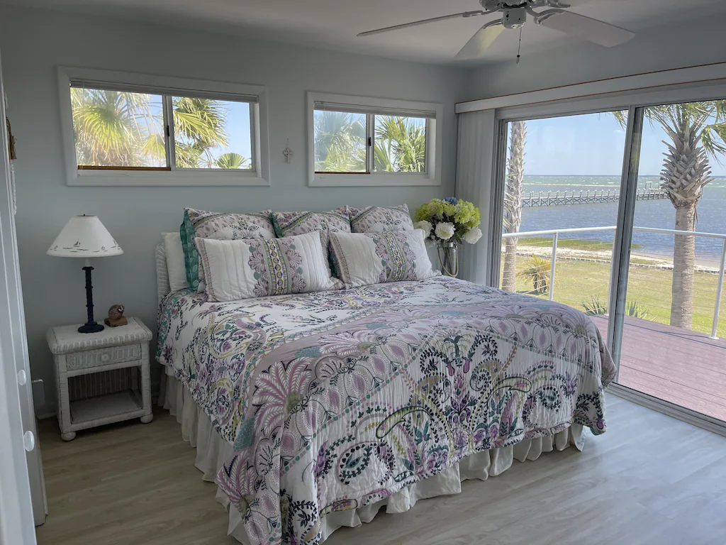 Immaculate 3bd 2bath home with a wall of windows to the bay that is full of fish, wildlife, and stunning sunrises. Bring your boat, paddle board, wind surfing board, fishing poles, crab pots, fins and snorkels to use on our dock. Dock is lighted, has a fish cleaning station with running water. Enjoy walks or biking along the path that runs the entire length of the cape.. Cook hot dogs and s’mores in the fire pit or while watching the sunset over the gulf. If you enjoy photography and birdwatching you will be amazed. Horseback riding on the beach and pickle ball are offered at Salinas Park. There is a hiking/nature trail in the State Park. If you need to get a little work done, we offer 5G internet.