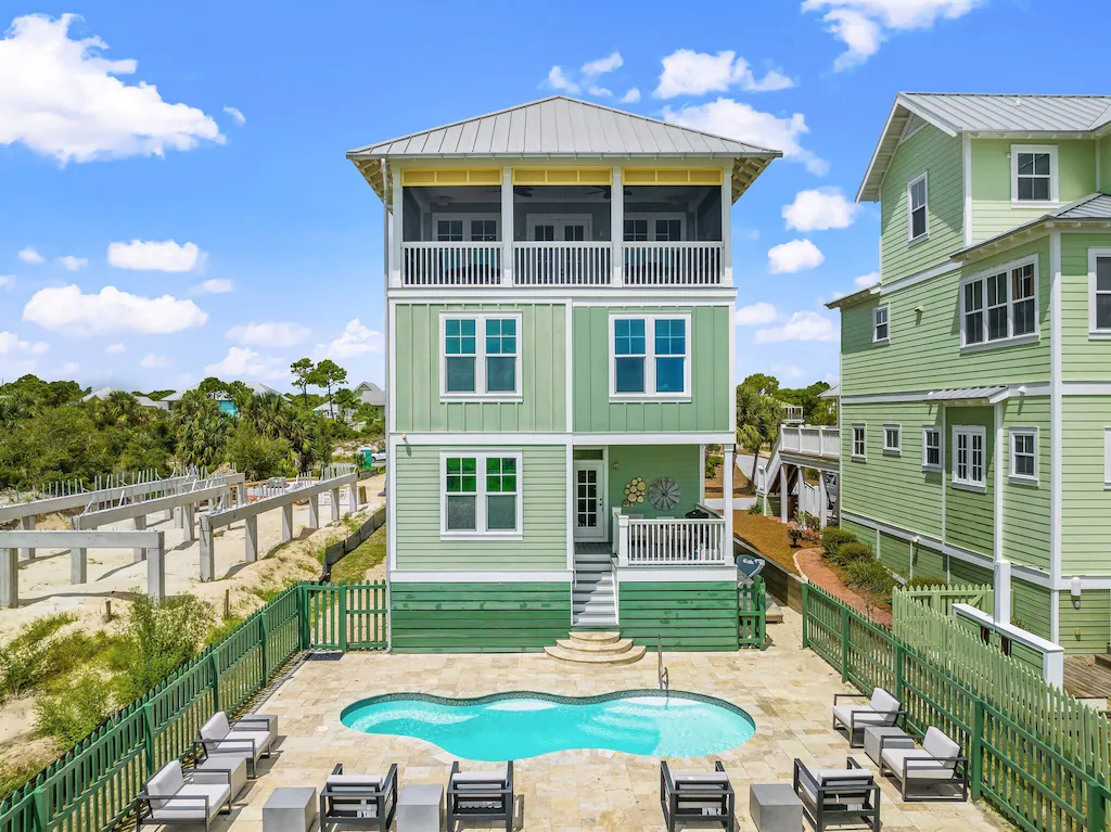 Entire house located right on the beach! This spacious house is located right on the Gulf and is perfect for a large family getaway. Cape San Blas is the right destination if you want a relaxing vacation away from all the bustle and noise. Located on the Forgotten Coast of Florida, this area is known for its pristine beaches full of sun, white sand, and beautiful blue water. The Cape is also known for having some of the best fishing in the country! The house has three floors, and includes a game room, a large living area, and standard kitchen with all major appliances. The top floor offers stunning views of the ocean and beach and includes a screened in porch area perfect for a peaceful morning or serene evenings. With 5 King beds, 6 Full beds, and 2 Twins, this is a great choice if you have a large vacation gang coming with! The house if perfect for large families or large groups like family reunions. If you are looking for a peaceful getaway with your own little stretch of beach, then you have come to the right place!