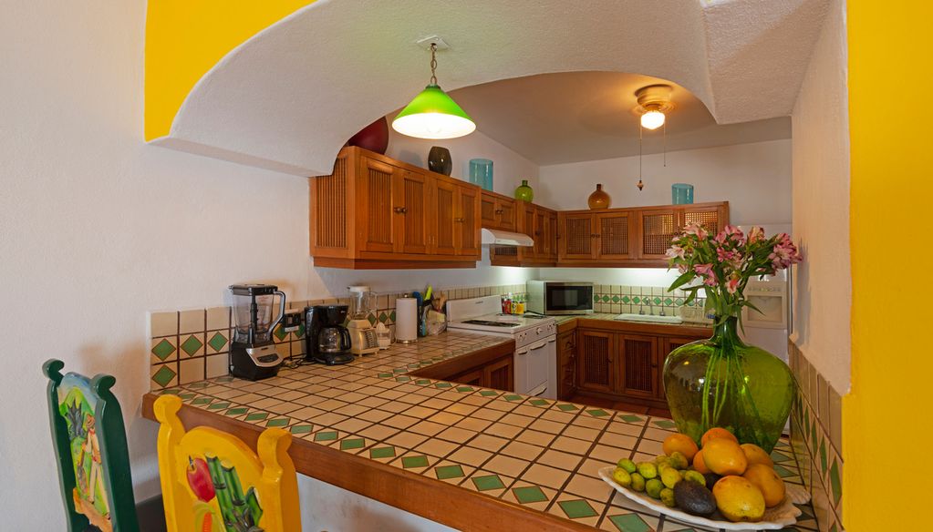 The opulent 4th bedroom “Honeymoon Suite” is a separate “Casita” located on the top floor with spectacular bay and ocean views. It has a kitchenette, a private balcony deck, an ensuite bath, and a king bed.