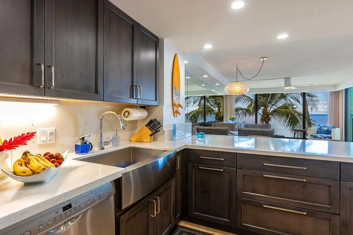 Instead of purchasing a condo that was partially upgraded to the previous owner\'s taste or budget, we selected this condo because we can start with a clean slate. The materials, appliances, and furniture we chose are the reflection of our desire to have a luxury oasis for our guests, or when we visit. My wife hates it when we spent our hard-earned money on vacation and stay at a place that is not nicer than our own home. Therefore, we are doing our best to make sure that our guests enjoy the inside of our unit as much as they are enjoying the beautiful, well-kept ground at the Mahana or the spectacular ocean view.