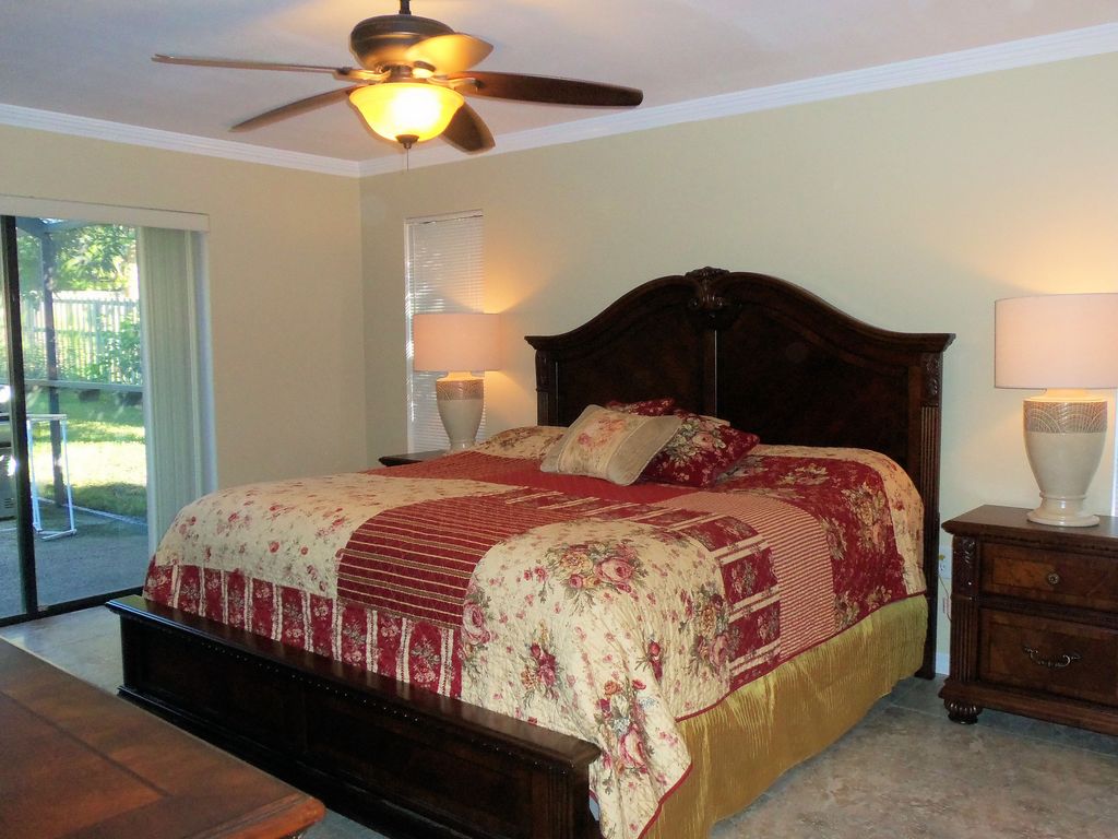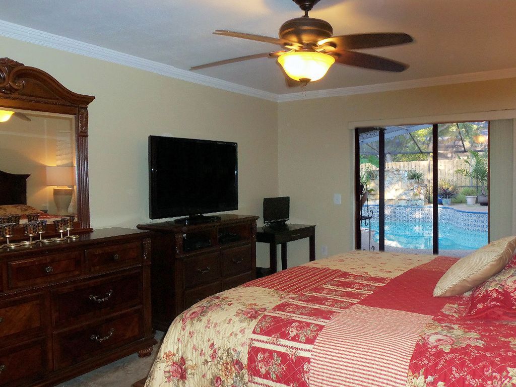 This is the best location in Pinellas County with over 30 acres of private community park including paved walking trails, 4 lighted tennis courts, basketball hoops, and playgrounds. Take a look at the map, your options are AWESOME. Google “Honeymoon Island State Park” an unspoiled natural paradise of Gulf beaches and wildlife sanctuary. Take a ferry to Caladesi Island State Park where you’ll lose your breath the first time you emerge from the nature trail onto the Gulf shores. You might spend your entire day on the Dunedin Causeway, beautiful water on both sides, where everyone does their own thing (fishing, swimming, sleeping, reading, watching, walking, biking, running, kayaking, sailing, whatever). Love the sunset? Pick just about any place nearby, including Dunedin Causeway, Clearwater Beach, Honeymoon Park, Crystal Beach (bring your camera, the beauty is calming to the soul). What else? The sponge docks at Tarpon Springs are just north, St Pete to the south, or Tampa to the east. Orlando is less than 2 hours away. You could see NFC football, American league baseball, MLB spring training, or even NHL hockey. The four championship courses of the Innisbrook Golf resort are next door (plus numerous other less known golf courses). Best of all you’ll relax in a fully furnished Palm Harbor home with all the amenities to make your stay a success. This 2156 sq ft home is a classic Florida split, meaning the master bedroom is on the opposite side of the house from the two guest rooms. The master bedroom has a private bathroom and the bed is a king size. The two guest rooms share a bathroom. One room has two twin beds while the other has a queen sized bed. There is a fully furnished kitchen, wireless internet access (free Wi-Fi), HDTV, and of course, a pool. You will love the 1700 sq ft screened in patio featuring a 20,000 gallon pool with waterfall, cable television, and an available gas grill for cooking out.