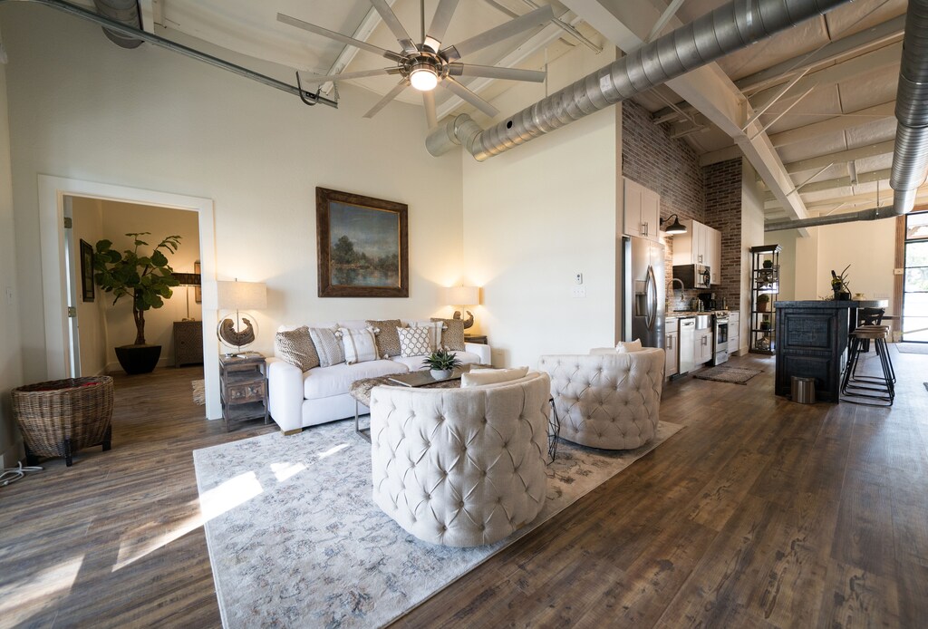 Eagles Landing Lodge is located in the heart of The Village of Old Town Bulverde surrounded by restaurants and shops. The building is the former Comal County Courthouse which has been completely renovated into a very unique lodge. The lodge style is rustic yet elegant, with a modern flair. It has a large suite with king size bed, a small room with built-in, twin size bunk beds and in a separate area that closes off privately it has a pull down queen size Murphy bed. It has a grand open space with two living area and two dinning area. The full kitchen has a long bar with bar stools. Kitchen is fully stocked with dishes, silverware, pots and pans, 2 coffee makers and serving dishes for small events.We have covered porches with relaxing views of the hill country and the village. A perfect place where couples or families can come to enjoy this quaint little area which has many things to do within walking distance or just a few minute short drive away from beautiful San Antonio, TX.