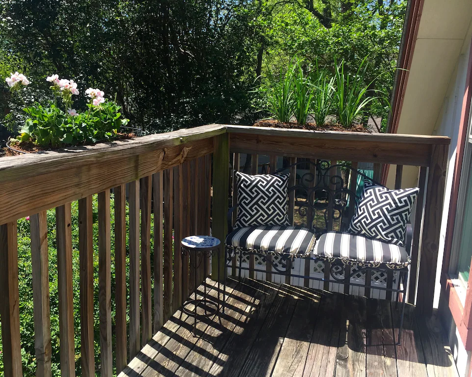 Get away to the Texas Hill Country and enjoy a relaxing stay at the charming White Oak Cottage. The upstairs guest suite, sleeps 2 with a comfortable king size bed, full bathroom, seating and dining area, and mini Kitchen. Located in downtown Boerne, 1/2 block off of Main Street and walking distance to shopping, brewery\'s, wine bars, and restaurants! The upstairs apartment has a separate entrance allowing for complete privacy.