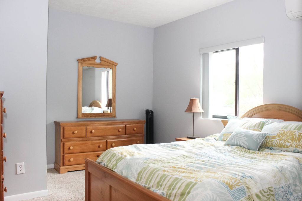 2 bedroom, 1 bathroom apartment with sleeper sofa that accommodates up to 6 people. Washer and dryer, air conditioning, cable, and internet all included. This 900 square foot unit is located in the back of the building, just up the stairs from your on-site parking.