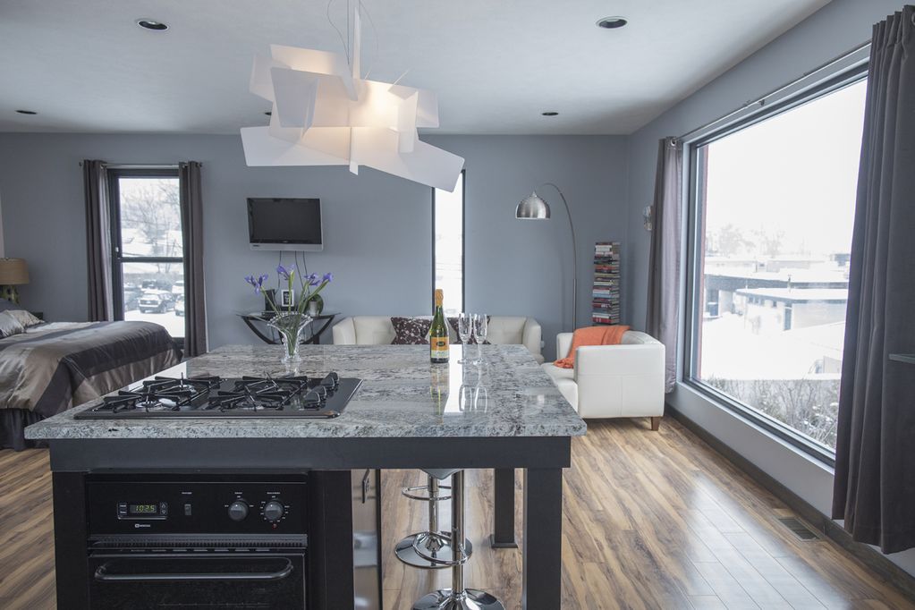 Overlooking the historic Traverse City Cigar Box Company, a fantastic studio loft is the perfect mix of modern design and the perfect location. Found in the heart of Downtown Traverse City, you’ll be within walking distance to all the major attractions, restaurants and bars.