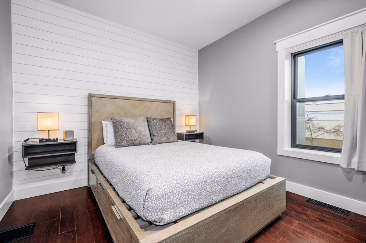 Newly renovated 2nd floor apartment in Downtown Traverse City. This 2 bedroom apartment is equipped with a queen bed in each room, full size pullout sofa and 2 convertible chairs in the living room for extra sleeping space.