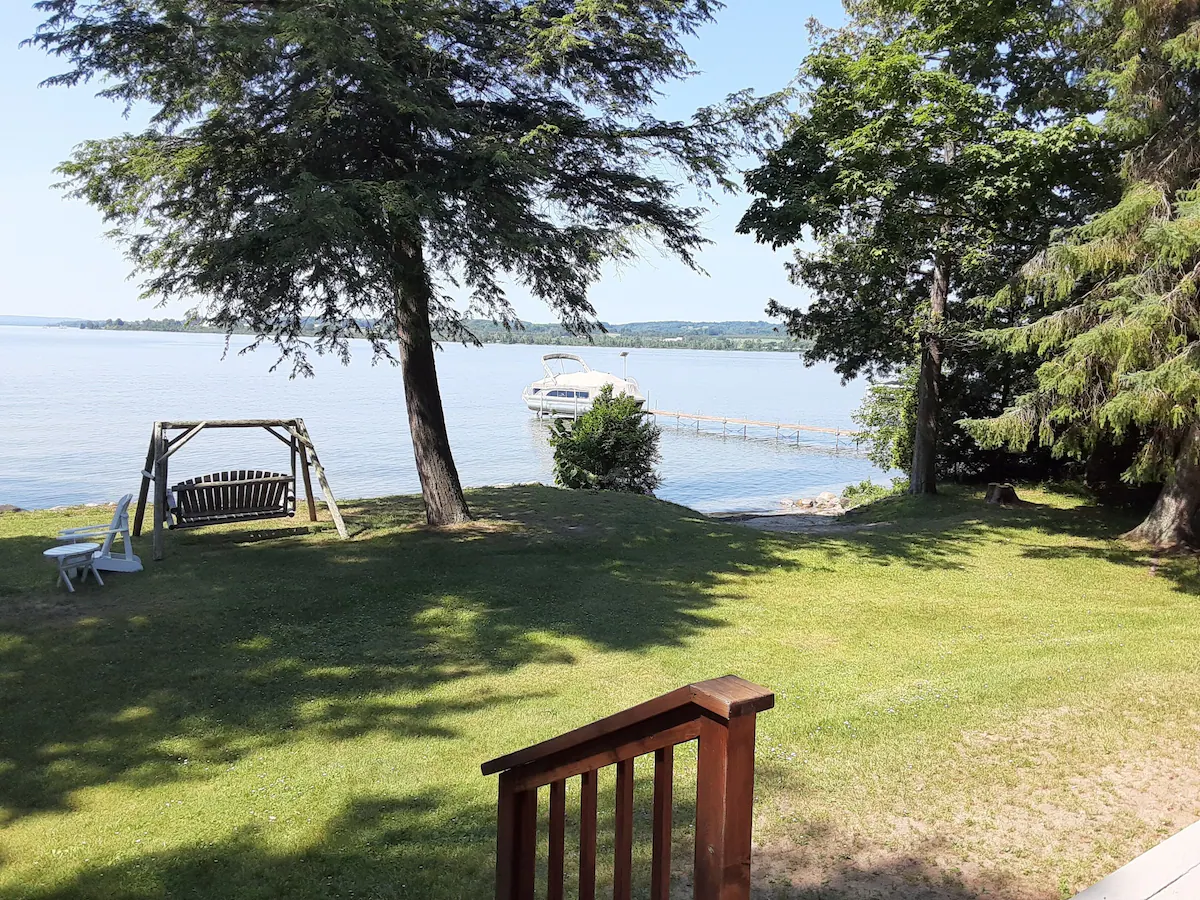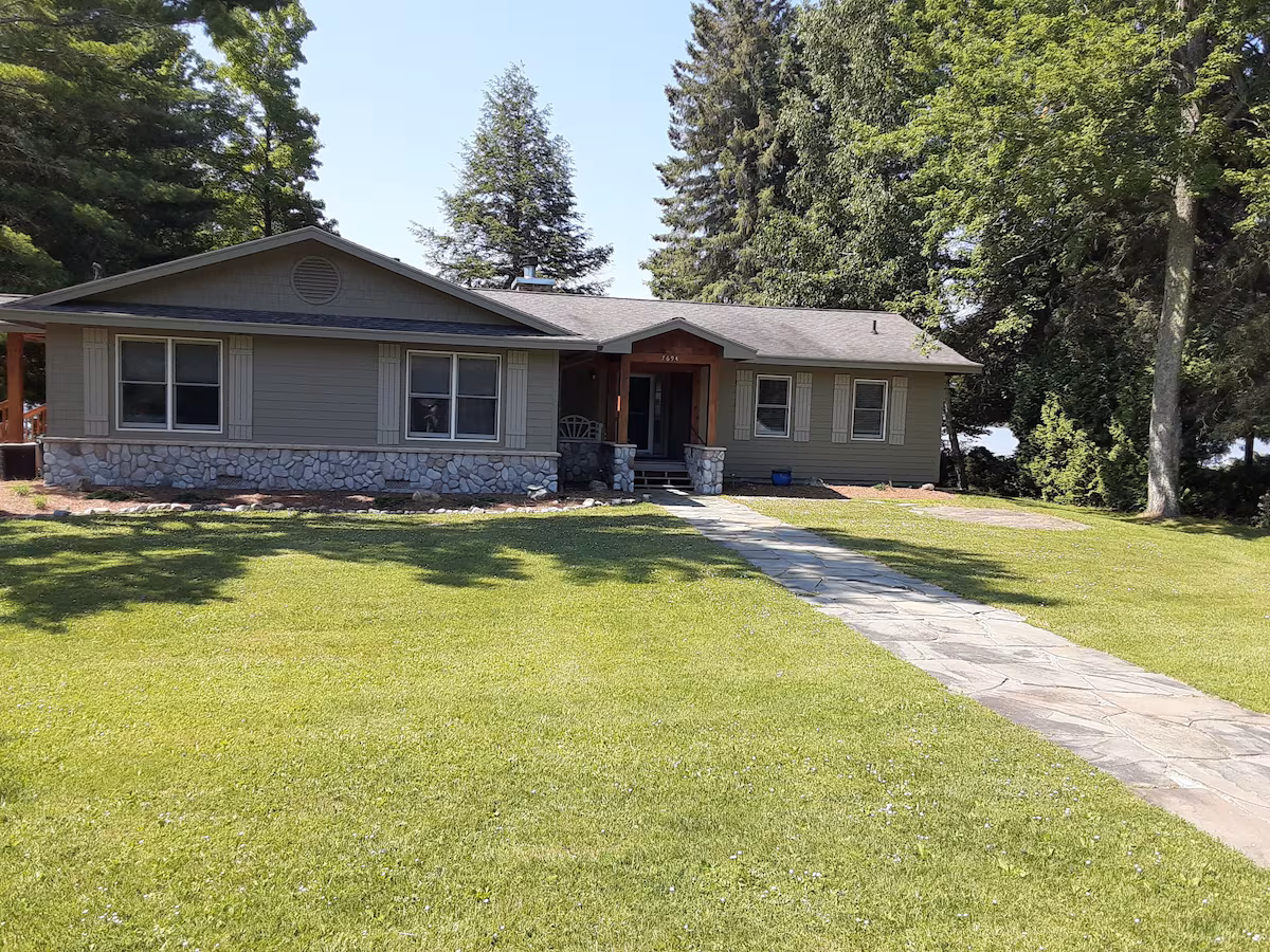 The property and lake frontage are great. We had a beautiful late summer day during our stay and we were able to swim in the lake. It’s a hard pack sandy bottom very convenient to swim off the dock. Communication with home owner was good and the location is convenient to TC and other towns in the area.