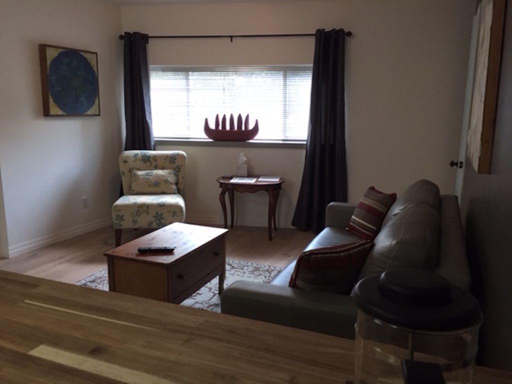 This is a newly renovated one bedroom guest suite on the main floor of our home it is completely private with it\'s own entrance off the vestibule. The unit is light filled and spacious. There is a bedroom, kitchenette, three piece bath and a living room. The unit is located directly across the street from a neighbourhood park. We are in the west end with all of the coolest restaurants, great shopping and night life nearby. We are a short walk from lake Ontario and Toronto harbour.