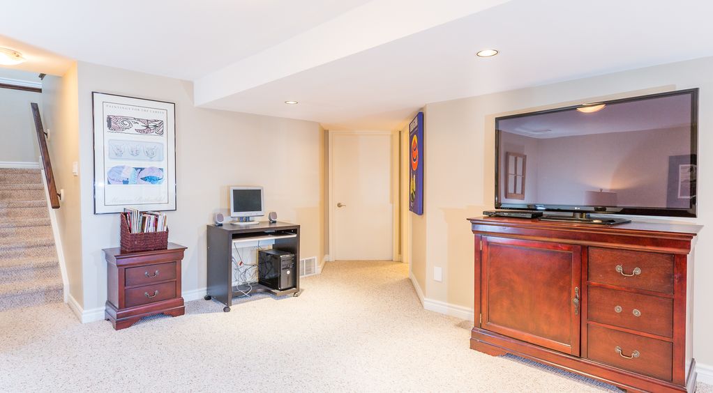 The large, bright and appealing living room invites you to relax, read a book, enjoy a movie or your favourite show on the audio/video centre, or surf the net through the High Speed WIFI. The main floor audio/video centre is equipped with Large screen LCD TV, digital cable, DVD and radio with CD and a Bose audio docking station with lightning connector (iphone 5 and higher). We also provide our guests with access to Netflix and PrimeVideo through our AppleTV
