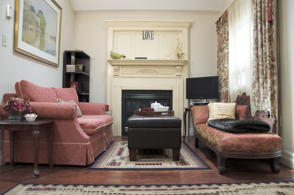 Our one bedroom cottage can accommodate up to 4 people, 2 adults and 2 children. One bedroom with queen size bed and armoire, ensuite bathroom and access to garden. Living room can accommodate the two other guests on a comfortable pull-out sofa-bed. A fireplace is in the living room.