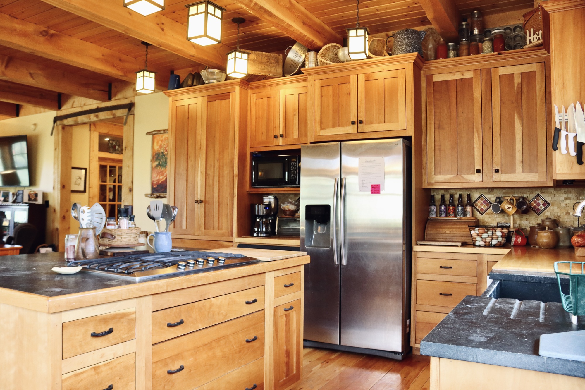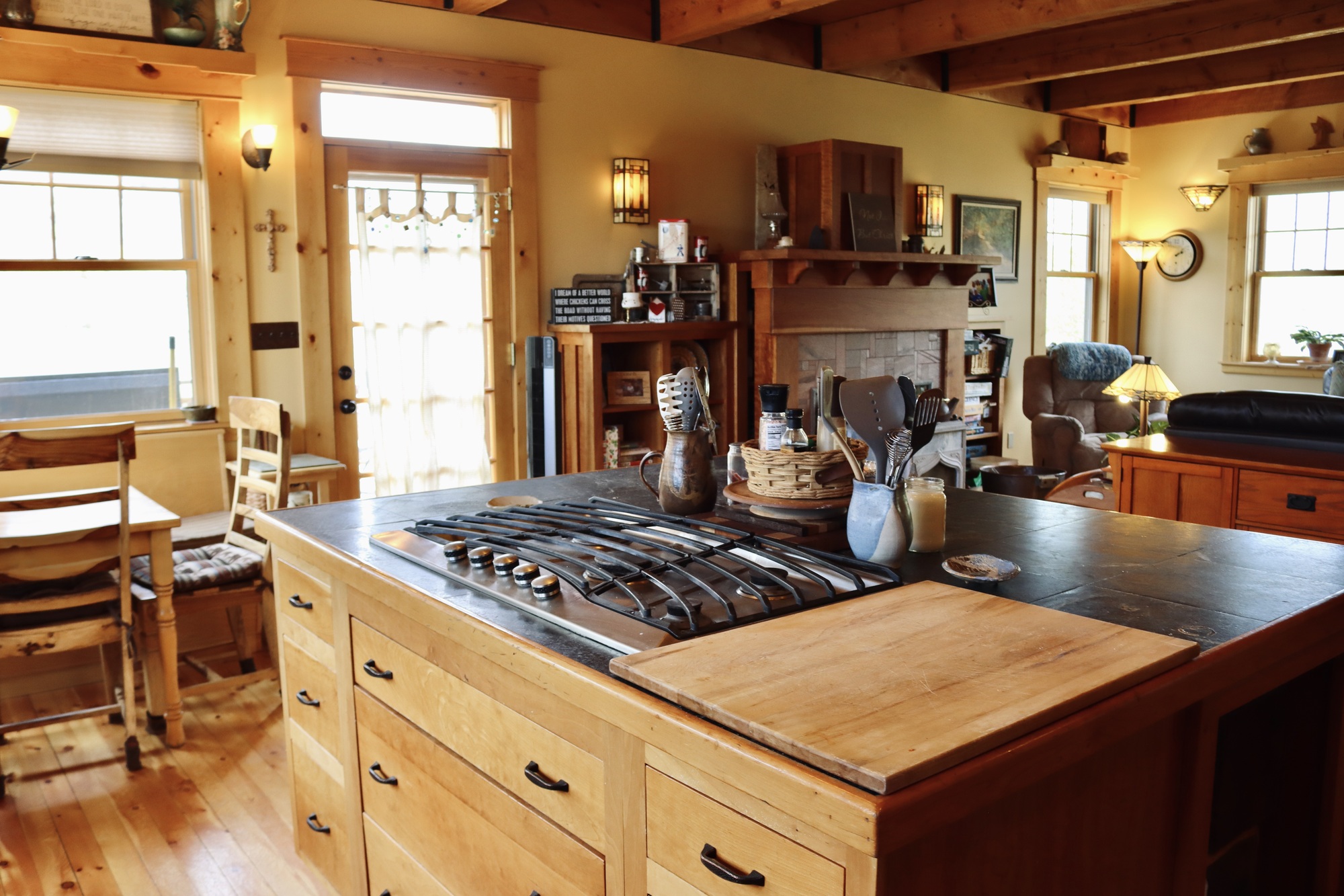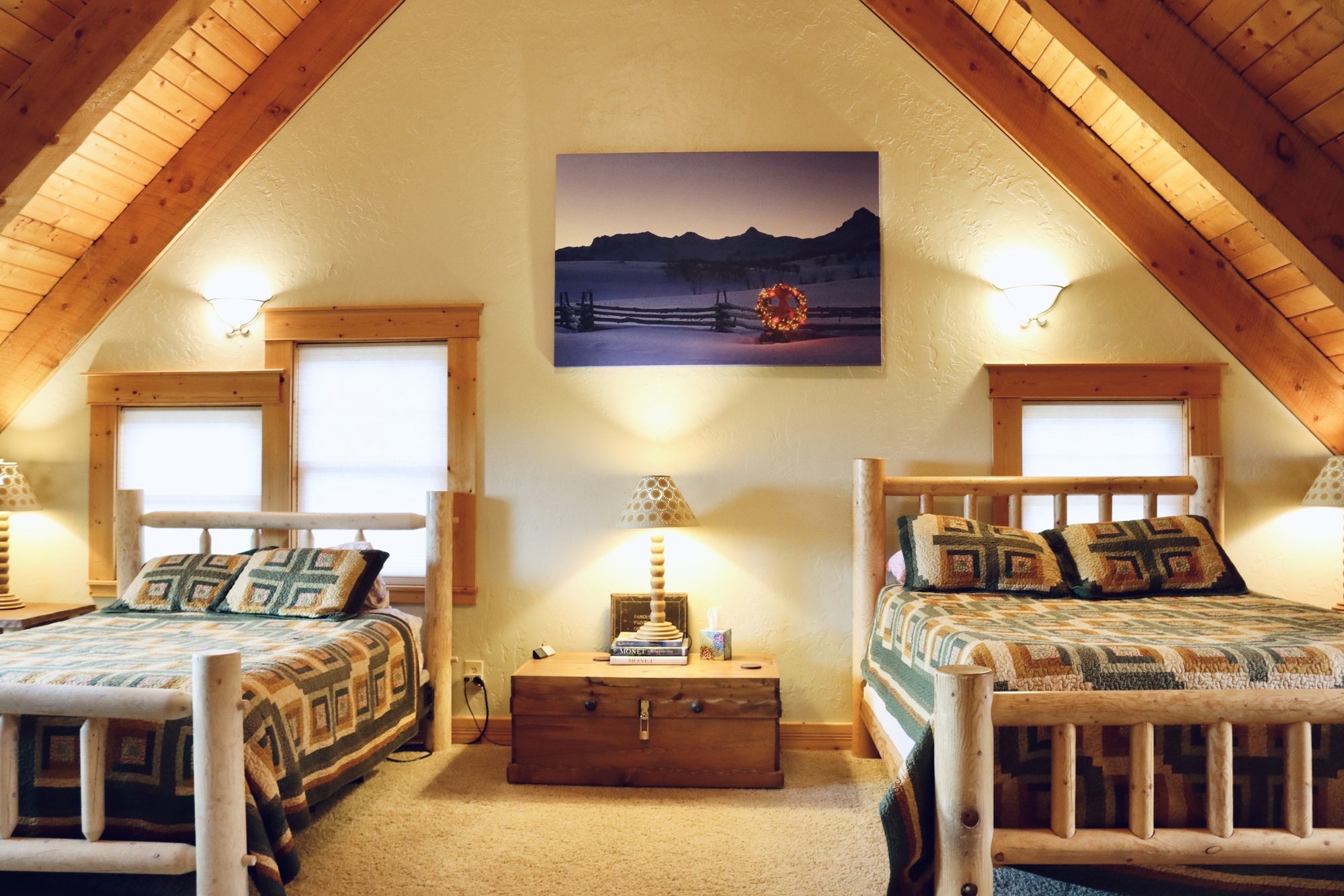 With three bedrooms, three bathrooms, a full kitchen and living room, The House On the Hill sleeps 8 people comfortably, but can hold much larger groups if need be. It’s a very popular choice for weddings and family reunions.